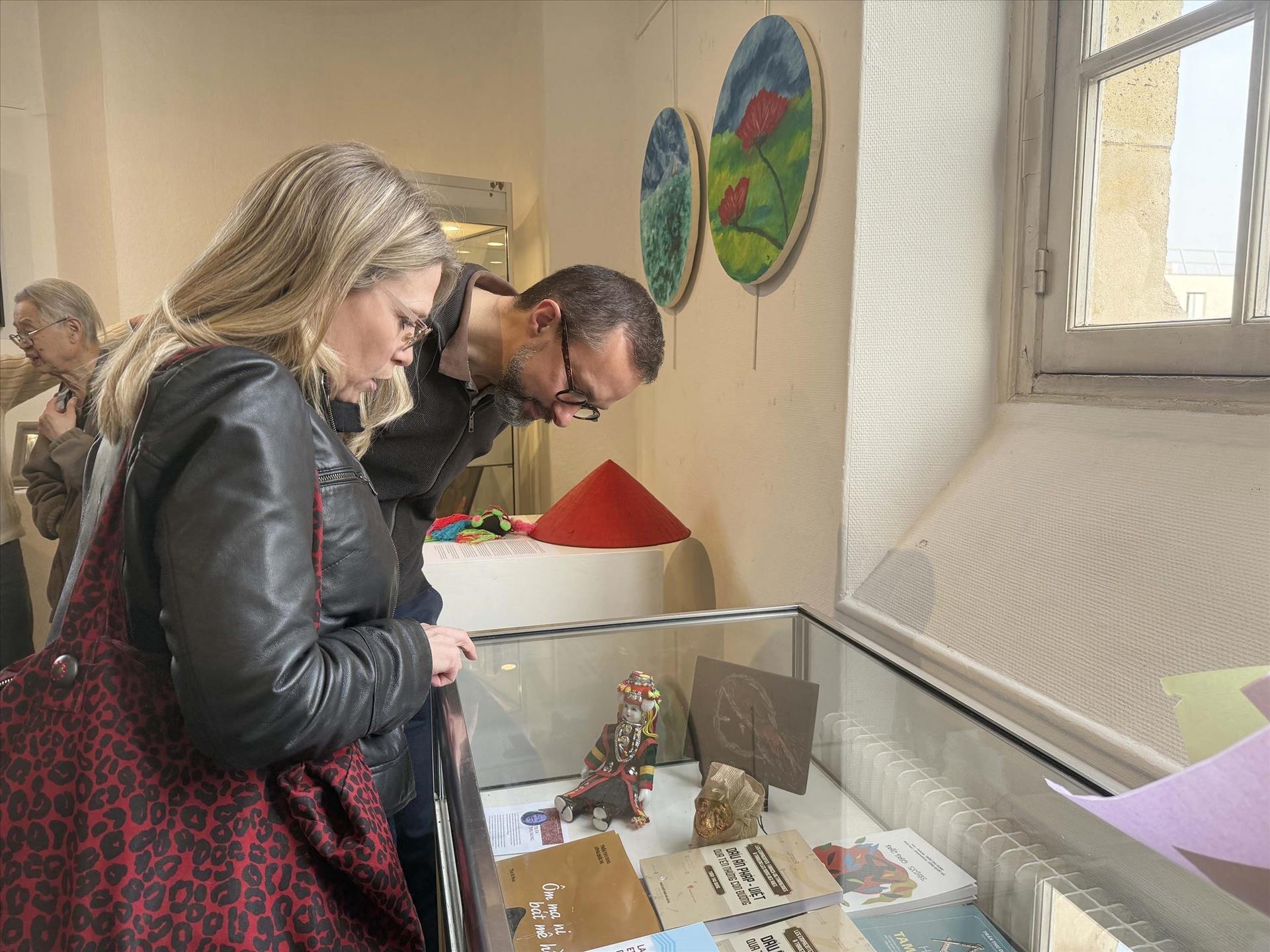 Khách tham quan triển lãm "Hồn Việt". Ảnh: Hữu Chiến - P/v TTXVN tại Pháp