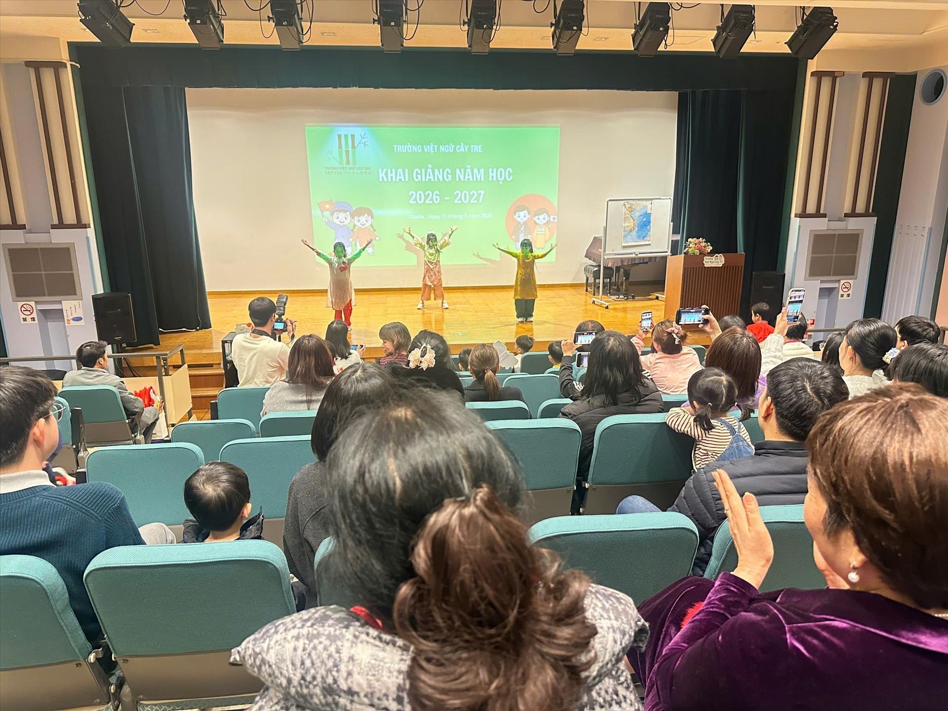Ngày 21/3, tại Trung tâm Văn hóa thành phố Higashi Osaka (Nhật Bản), Trường Việt ngữ cộng đồng Cây Tre đã tổ chức lễ khai giảng khóa K5, chính thức bắt đầu năm học 2026 trong không khí trang trọng và ấm cúng. Tham dự buổi lễ có ông Nguyễn Đăng Hoàng, đại diện Tổng Lãnh sự quán Việt Nam tại Osaka, cùng đông đảo phụ huynh, học sinh trên địa bàn, đại diện các lớp tiếng Việt tại thành phố Yao và lớp “Em yêu tiếng Việt”.