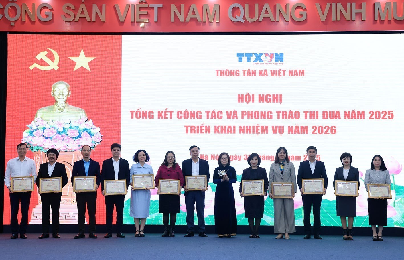 Dịp này, TTXVN đã trao Cờ thi đua, danh hiệu Chiến sĩ thi đua và Bằng khen của Tổng giám đốc TTXVN cho các tập thể, cá nhân có thành tích xuất sắc trong năm qua./.