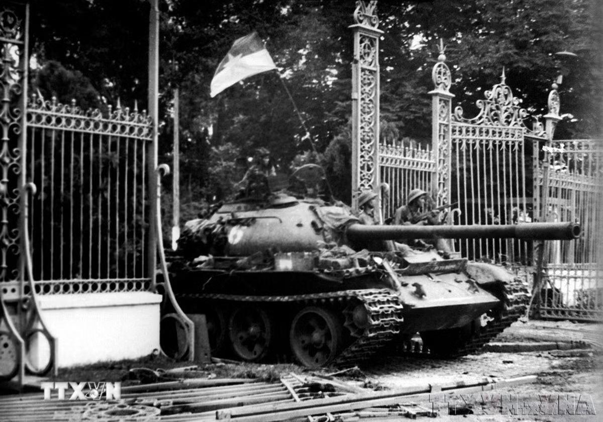 Hình ảnh xe tăng quân Giải phóng mang số hiệu 846 (Đại đội 5, Tiểu đoàn 2, Lữ đoàn tăng thiết giáp 203, Quân đoàn 2) tiến vào Dinh Độc Lập do nhà báo Trần Mai Hưởng chụp ngày 30/4/1975, trở thành hình ảnh mang tính biểu tượng cho Ngày Giải phóng miền Nam, thống nhất đất nước. Ảnh: Trần Mai Hưởng/TTXVN