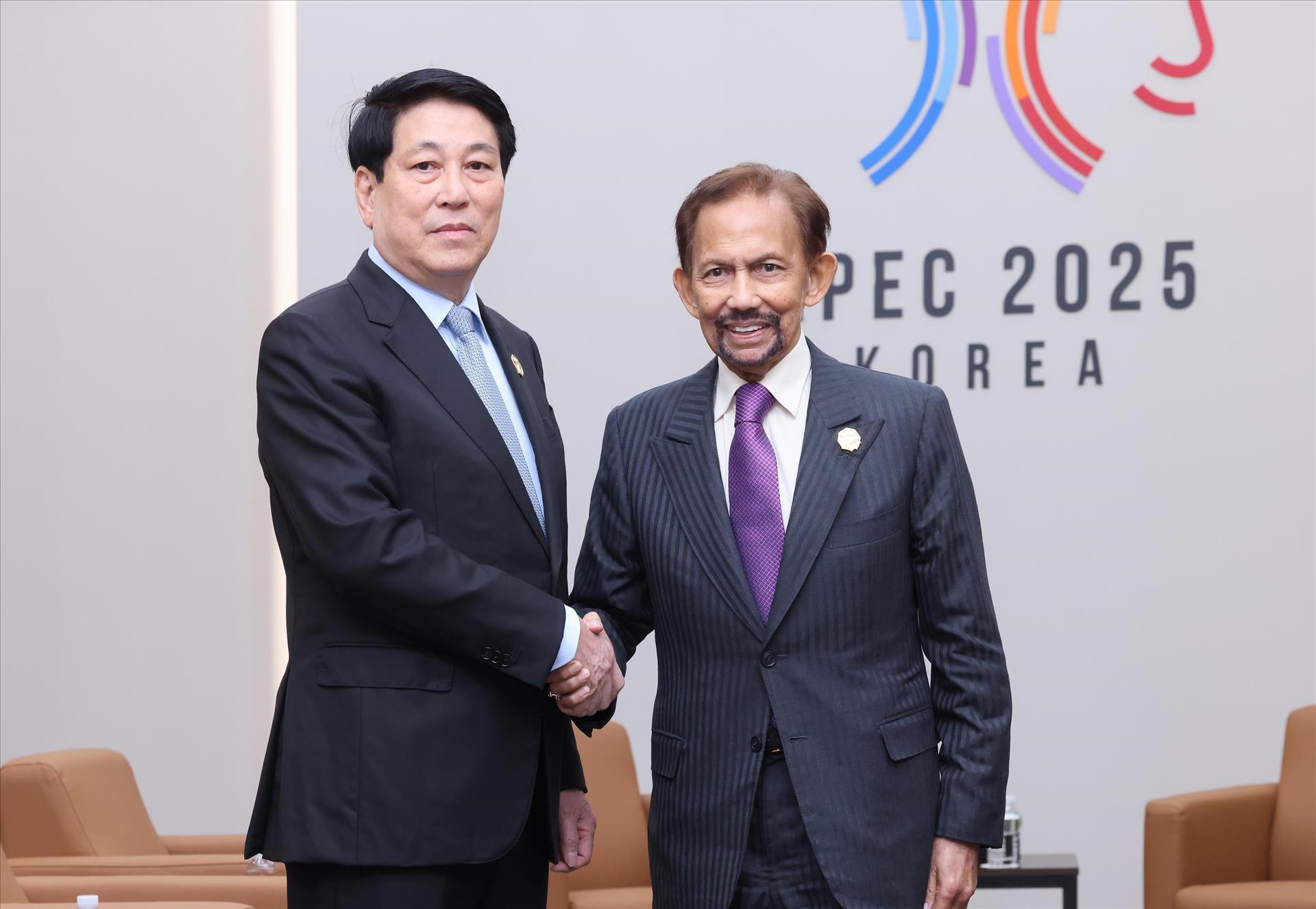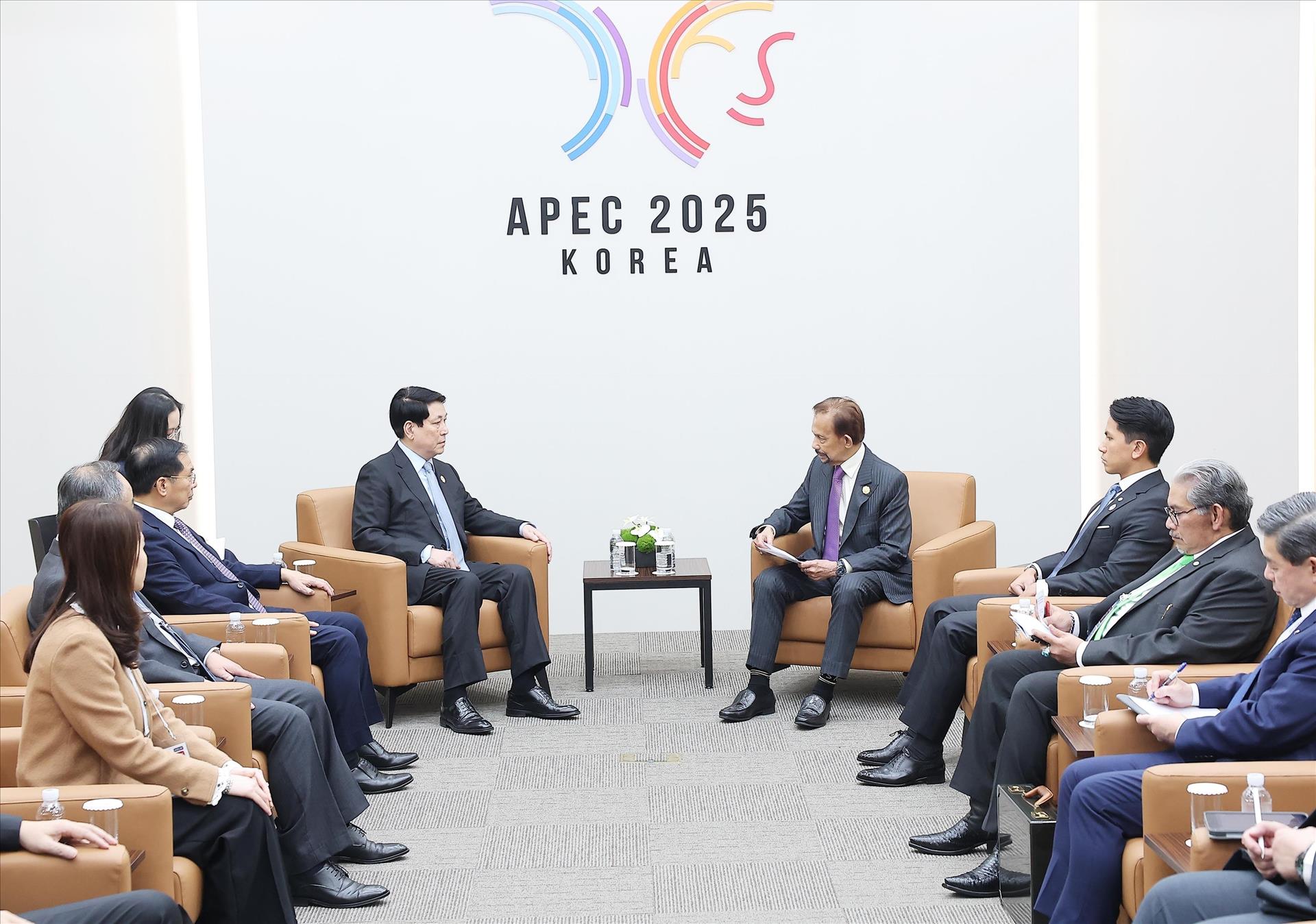 Chủ tịch nước Lương Cường gặp Quốc vương Brunei Hassanal Bolkiah. Ảnh: Lâm Khánh – TTXVN