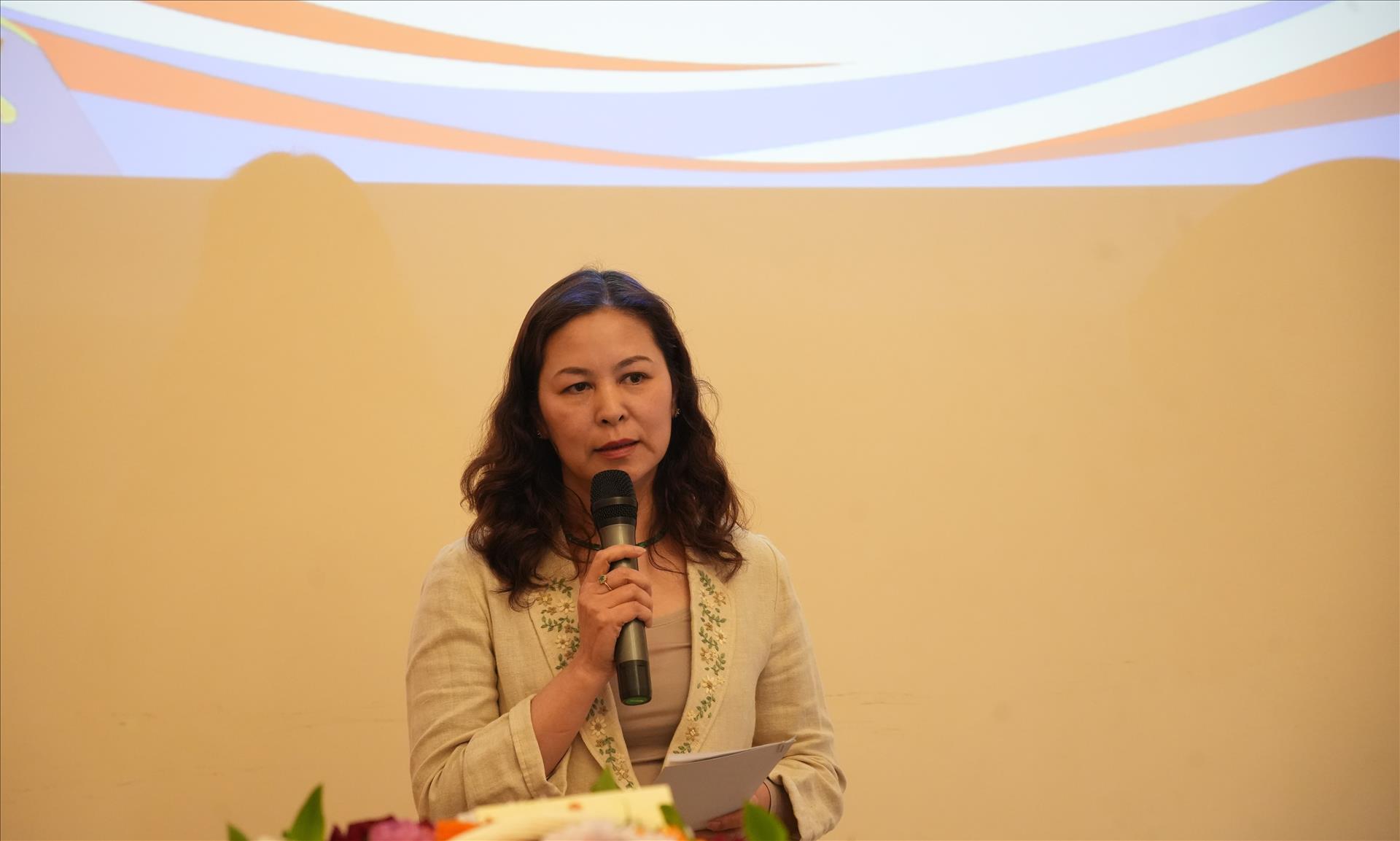 Phó Bí thư Đảng ủy tại Liên bang Nga Ngô Thị Thu Hoài phát biểu tại buổi lễ. Ảnh: Trần Hải - PV TTXVN tại Nga