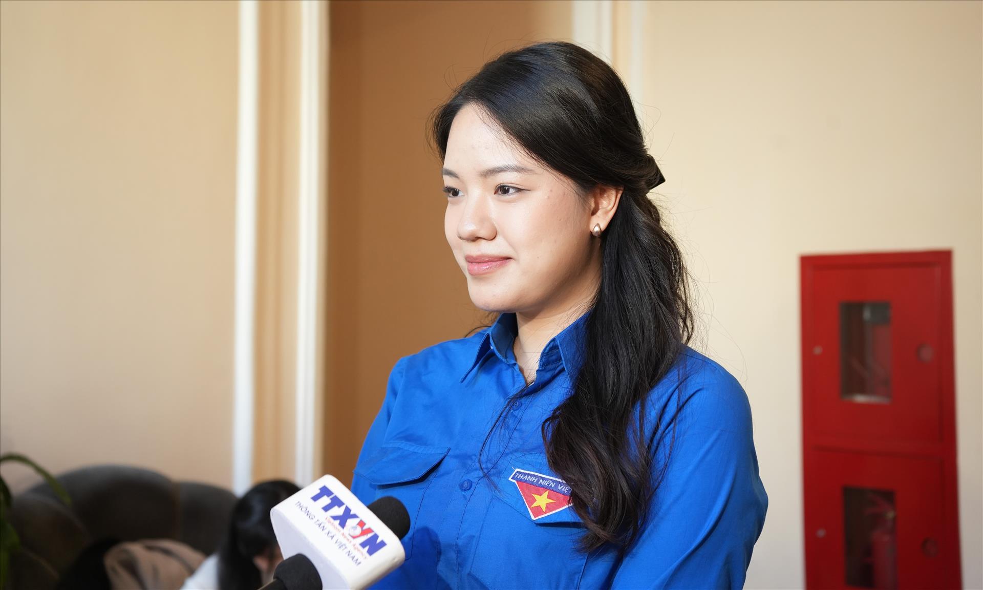 Nguyễn Minh Thu, Bí thư Liên Chi đoàn Đại học Giao thông đường sắt Moskva, trả lời phỏng vấn PV TTXVN tại Nga. Ảnh: Trần Hải - PV TTXVN tại Nga