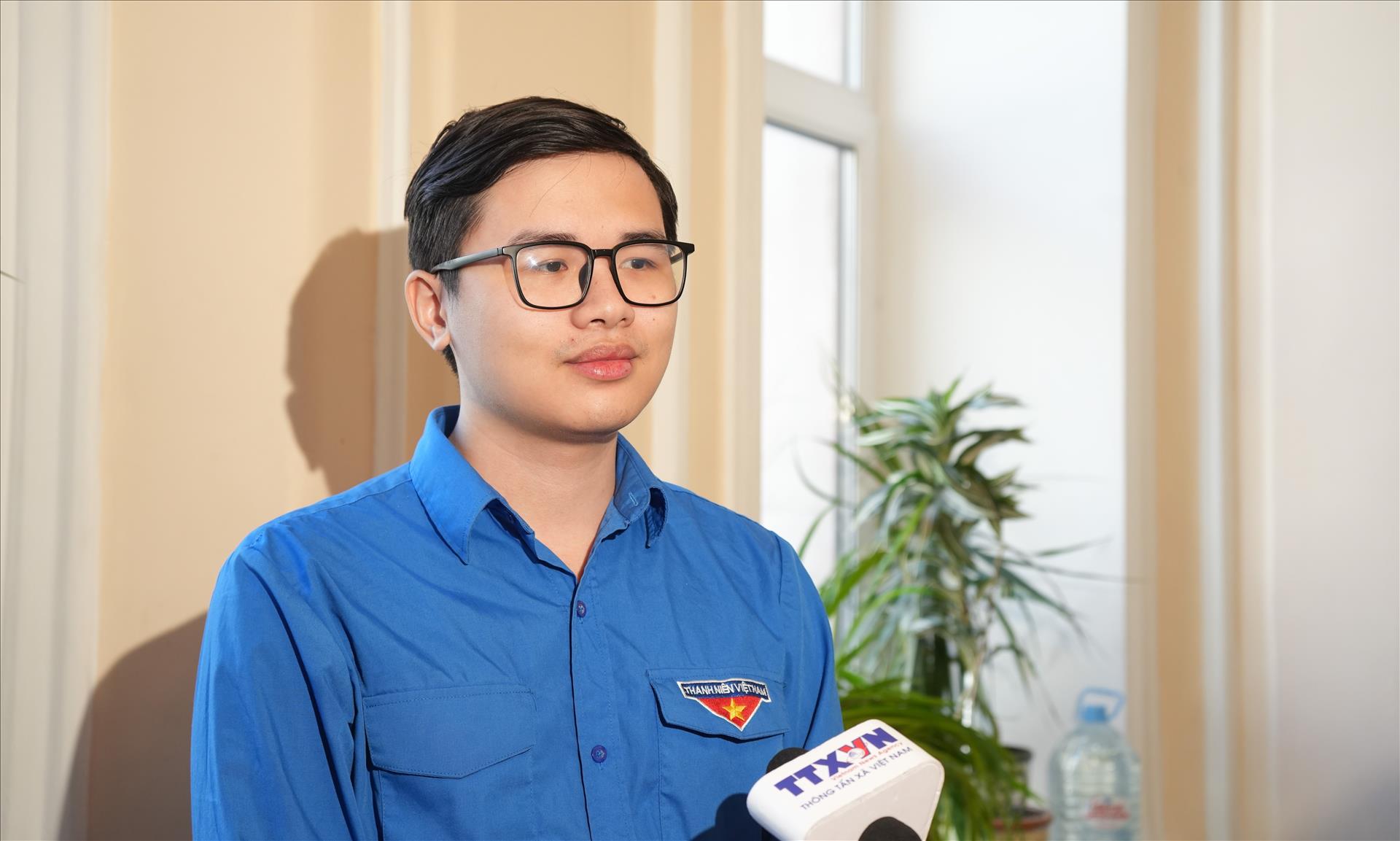 Anh Phạm Duy Nguyên, Bí thư Liên Chi đoàn Đại học Plekhanov, trả lời phỏng vấn PV TTXVN tại Nga. Ảnh: Trần Hải - PV TTXVN tại Nga