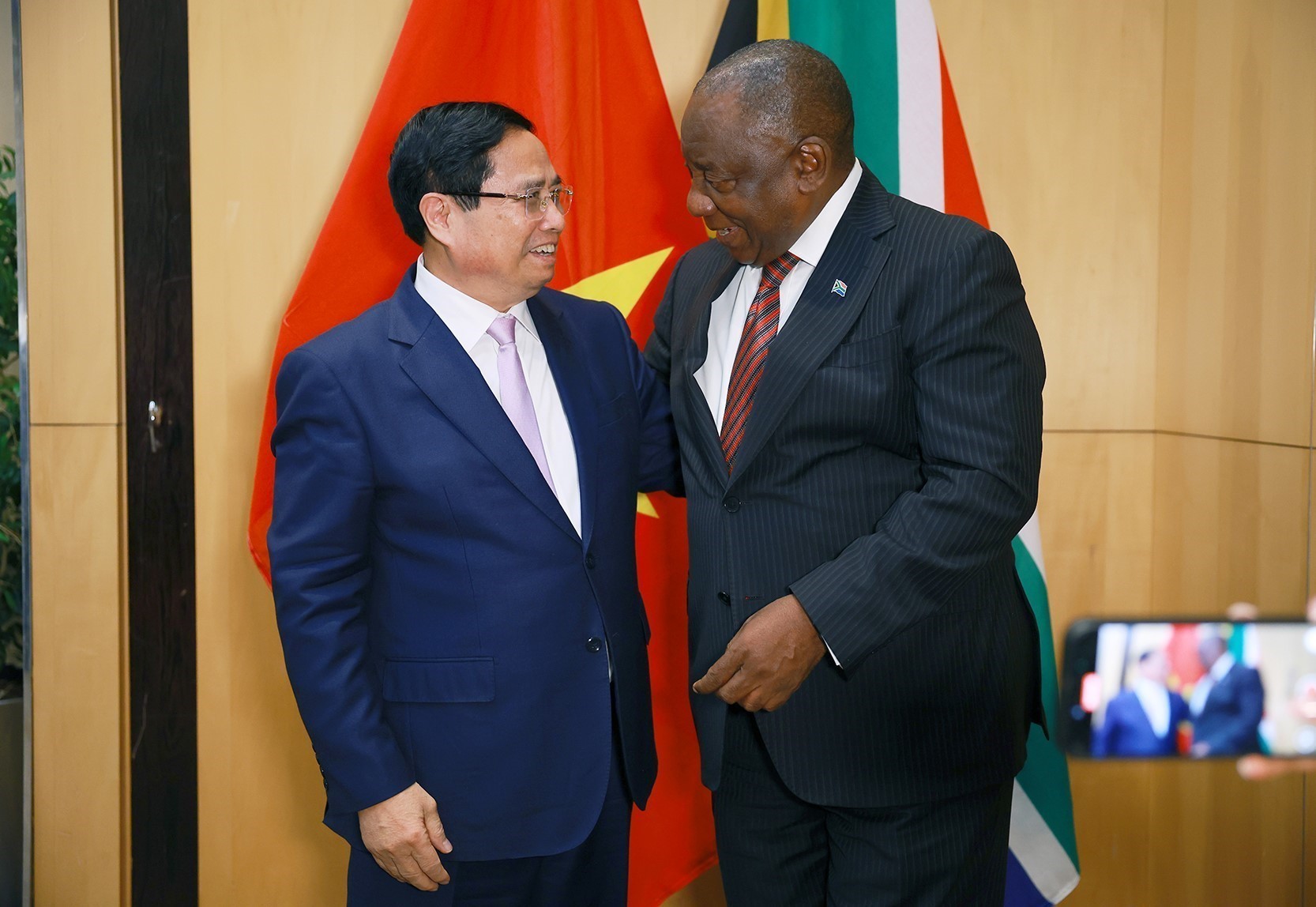 2. Trong bối cảnh toàn cầu và khu vực có những chuyển biến sâu sắc, sự phụ thuộc lẫn nhau ngày càng tăng của các nền kinh tế trên thế giới và căn cứ nguyện vọng chung của nhân dân hai nước, trên cơ sở kết quả chuyến thăm cấp Nhà nước của Tổng thống Nam Phi đến Việt Nam từ ngày 23-24/10/2025, trong khuôn khổ chuyến công tác tham dự Hội nghị thượng đỉnh G20 và hoạt động song phương tại Nam Phi của Thủ tướng Chính phủ Phạm Minh Chính từ ngày 21-23/11/2025, Việt Nam và Nam Phi quyết định nâng cấp quan hệ lên Đối tác Chiến lược.