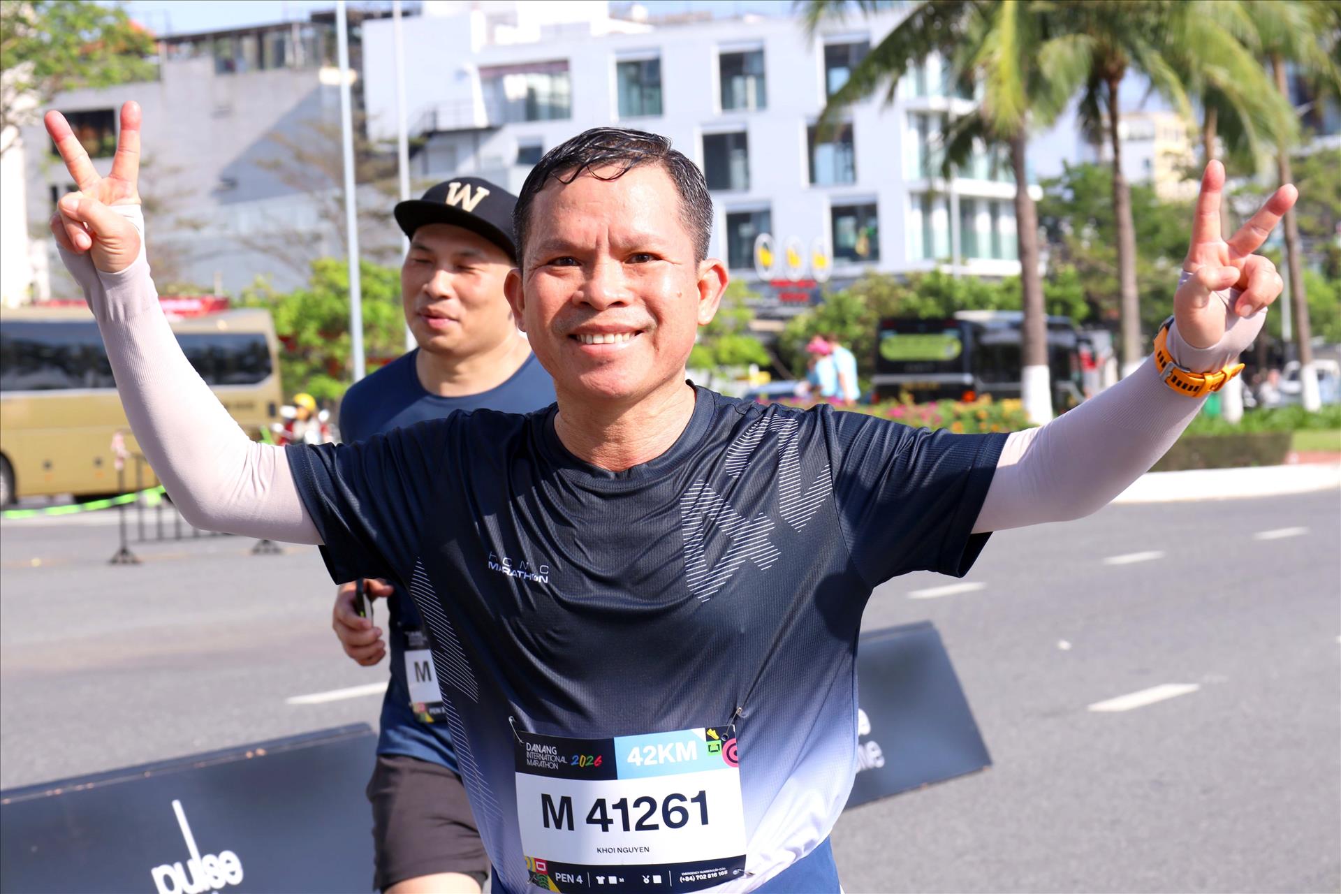 Vận động viên nước ngoài thích thú tham gia tranh tài tại Cuộc thi Marathon Quốc tế Đà Nẵng. Ảnh: Trần Lê Lâm - TTXVN