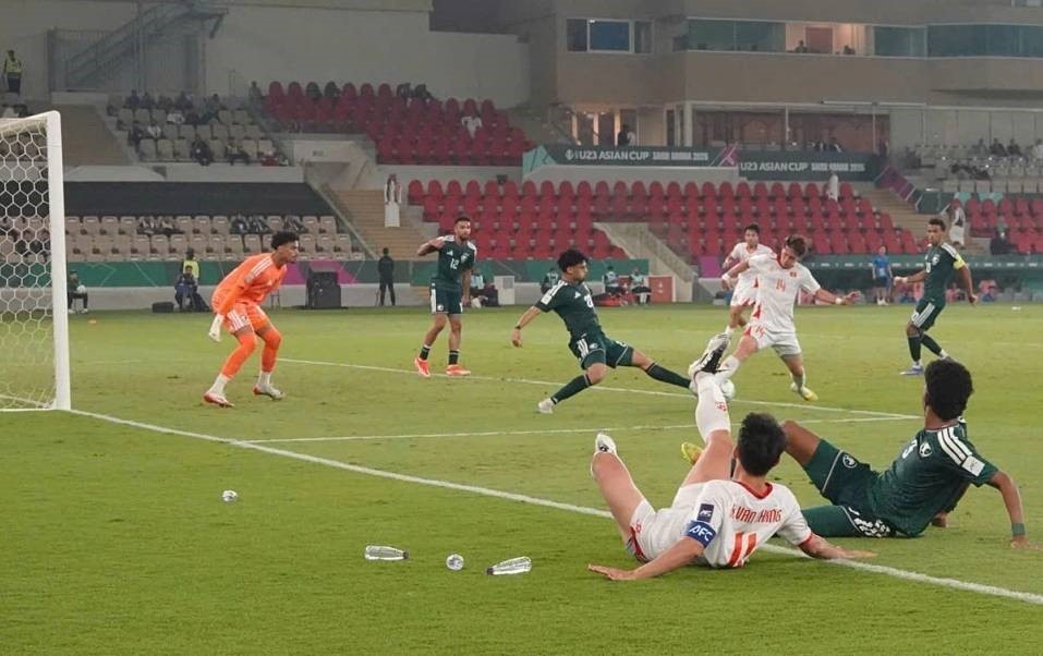 Lưới của U23 Ả Rập Xê Út rung lên ở phút 65. Ảnh: Nguồn AFC/TTXVN phát