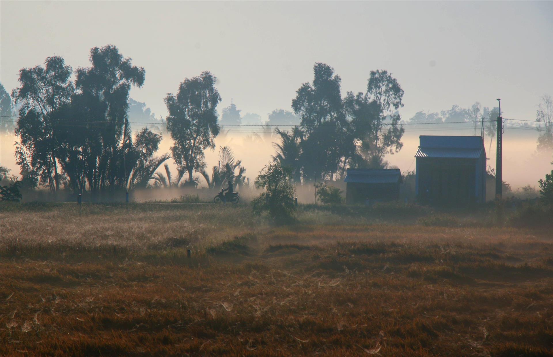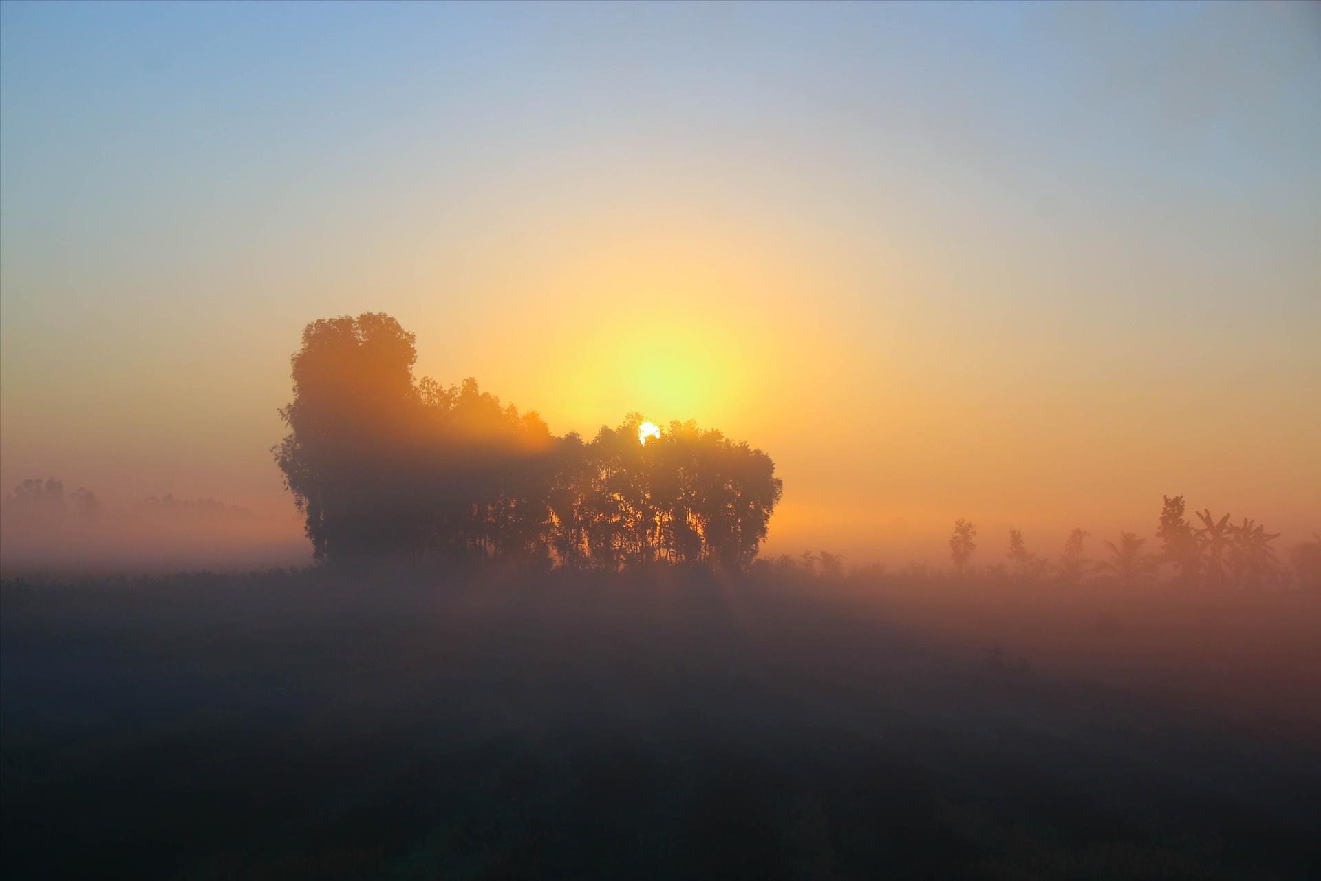 Miền quê Cần Thơ những ngày này khoác lên mình vẻ đẹp thơ mộng hiếm có, khi sương mù dày đặc hòa quyện cùng ánh bình minh ửng hồng. Từ sáng sớm, những cánh đồng trải dài chìm trong làn sương mỏng, tạo nên khung cảnh vừa huyền ảo vừa yên bình. Ánh nắng đầu ngày len lỏi qua hàng cây, chiếu xuống mặt đất lớp ánh sáng vàng dịu, làm nổi bật vẻ đẹp mộc mạc của vùng quê sông nước.