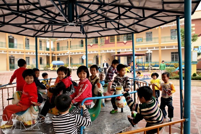 Giờ vui chơi của những công dân tương lai xã Song Phượng. Ảnh: Hoàng Giáp.