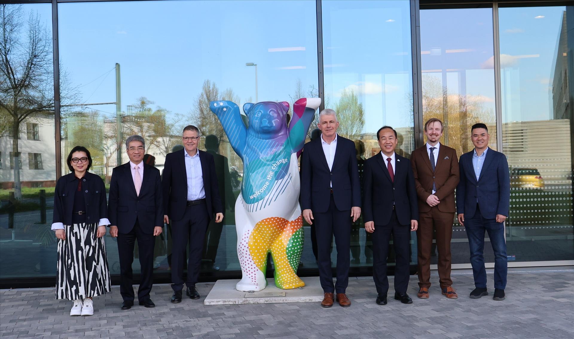 Đoàn chụp ảnh lưu niệm tại Đại học Steinbeis. Ảnh: Thùy Linh - PV TTXVN tại Đức
