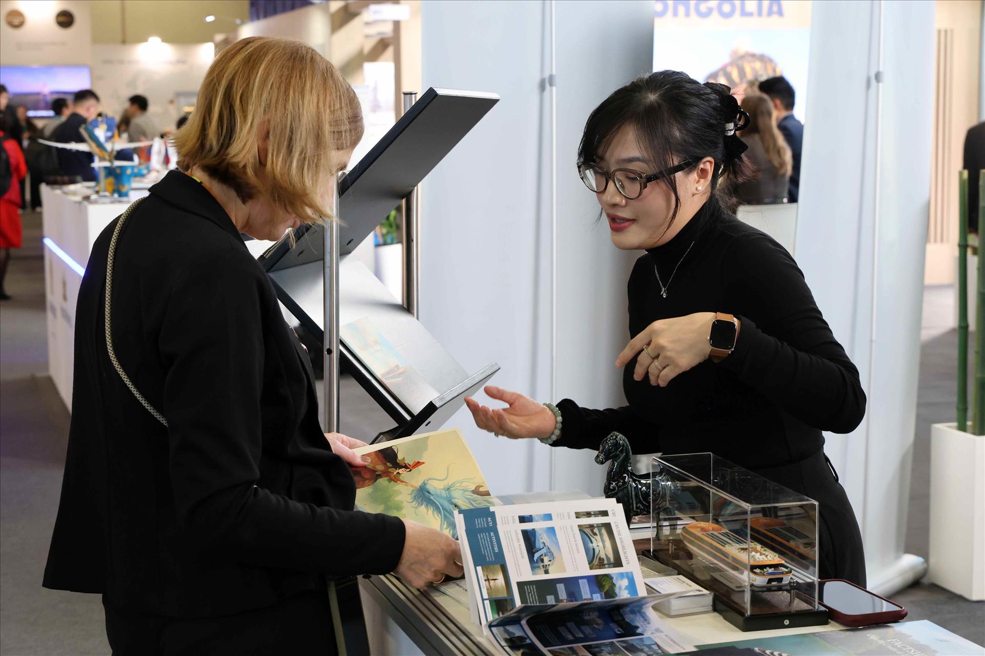 Doanh nghiệp quảng bá du lịch Việt Nam tại Hội chợ ITB Berlin 2026. Ảnh: Vũ Hiệp/TTXVN