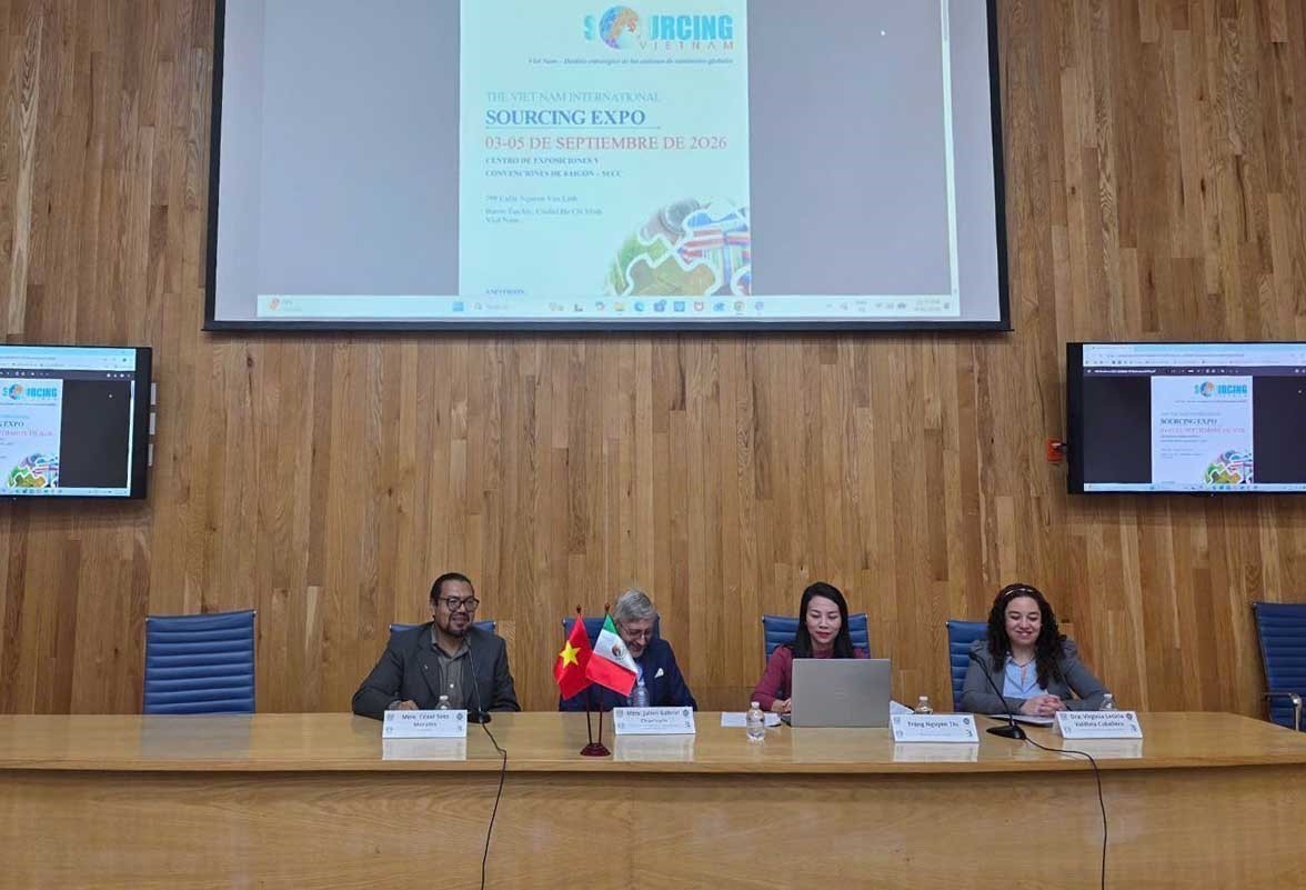 Nhân dịp này, Trưởng cơ quan Thương vụ Nguyễn Thị Trang cũng giới thiệu tới cộng đồng doanh nghiệp Mexico về Hội chợ Vietnam International Sourcing Expo 2026 (VIS 2026), dự kiến diễn ra từ ngày 3–5/9/2026 tại Trung tâm Hội chợ và Triển lãm Sài Gòn (SECC), Thành phố Hồ Chí Minh. Sự kiện do Bộ Công Thương Việt Nam chủ trì, quy tụ hàng trăm doanh nghiệp sản xuất và xuất khẩu Việt Nam với các nhà nhập khẩu, phân phối quốc tế, trải rộng từ thực phẩm – đồ uống, hàng gia dụng đến chuỗi cung ứng.
