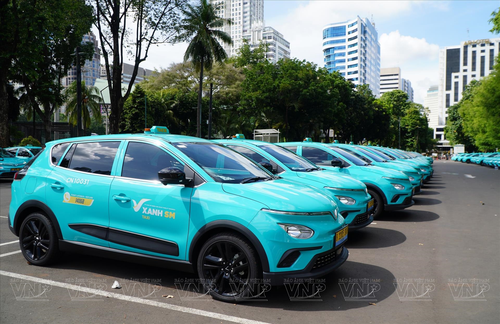 Taxi điện Xanh SM (Việt Nam) đi vào hoạt động tại thị trường Indonesia. Ảnh: TTXVN