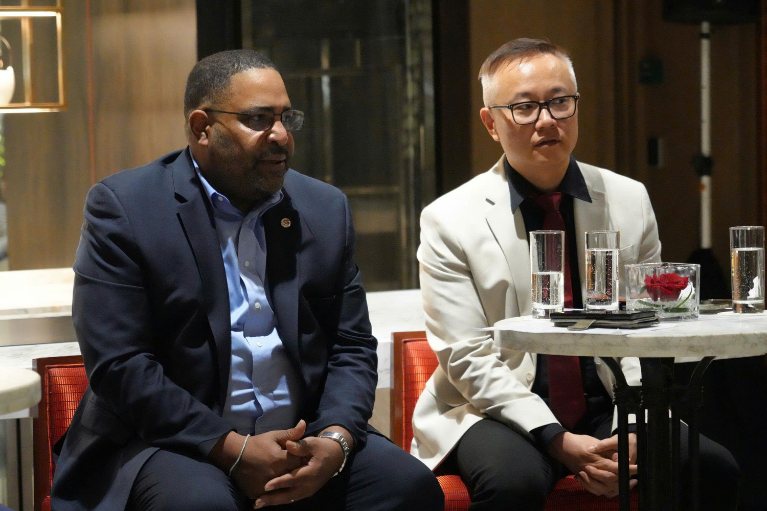 Tiến sĩ Lim Song - Chủ tịch Tổ chức Quyền Anh Việt Nam (VBO) (phải) và Ông Daryl Peoples - Chủ tịch đương nhiệm của IBF tại họp báo. Ảnh: PV/Vietnam+