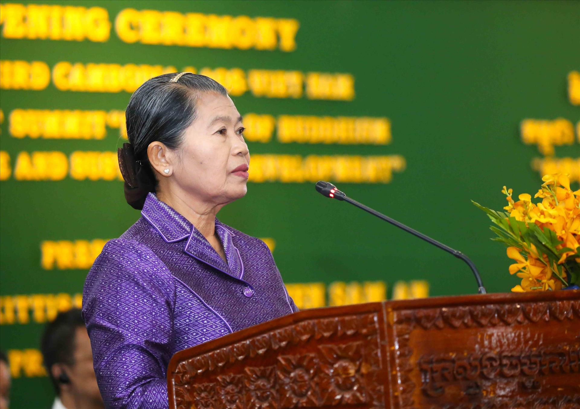 Phát biểu tại phiên khai mạc Hội nghị, bà Men Sam An cho biết Campuchia, Việt Nam và Lào là ba quốc gia láng giềng có quan hệ truyền thống lâu đời, cùng uống chung dòng nước Mekong và trải qua nhiều thăng trầm. Trong tiến trình lịch sử đó, Đảng, Nhà nước và nhân dân ba nước từng kề vai sát cánh hỗ trợ lẫn nhau giành độc lập, tự do và thống nhất dân tộc cho đến ngày nay. Đặc biệt, sau khi Campuchia thoát khỏi chế độ Khmer Đỏ, mối quan hệ giữa ba nước càng tốt đẹp, giúp hoạt động hợp tác trên mọi lĩnh vực, đặc biệt là lĩnh vực tôn giáo tiến triển nhanh chóng.