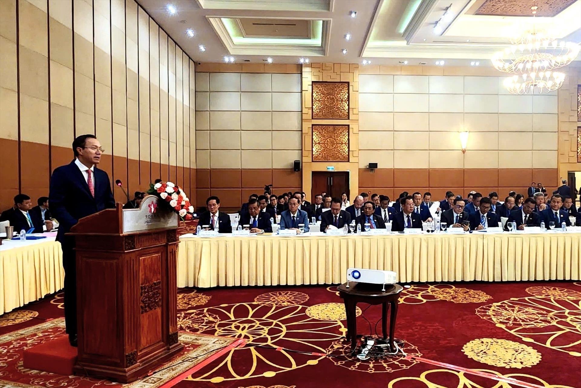 Ông Đoàn Trung Kiên, Phó Chủ tịch UBND tỉnh Tây Ninh phát biểu tại phiên toàn thể Hội nghị Hợp tác và Phát triển các tỉnh biên giới Việt Nam-Campuchia lần thứ 13. Ảnh: TTXVN phát