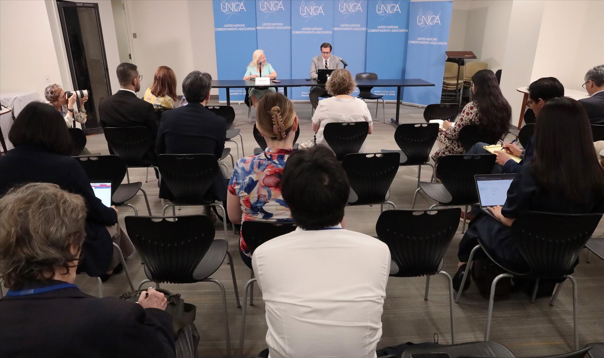 Quang cảnh buổi họp báo của UNODA tại trụ sở LHQ. Ảnh: Thanh Tuấn - Phóng viên TTXVN tại Mỹ