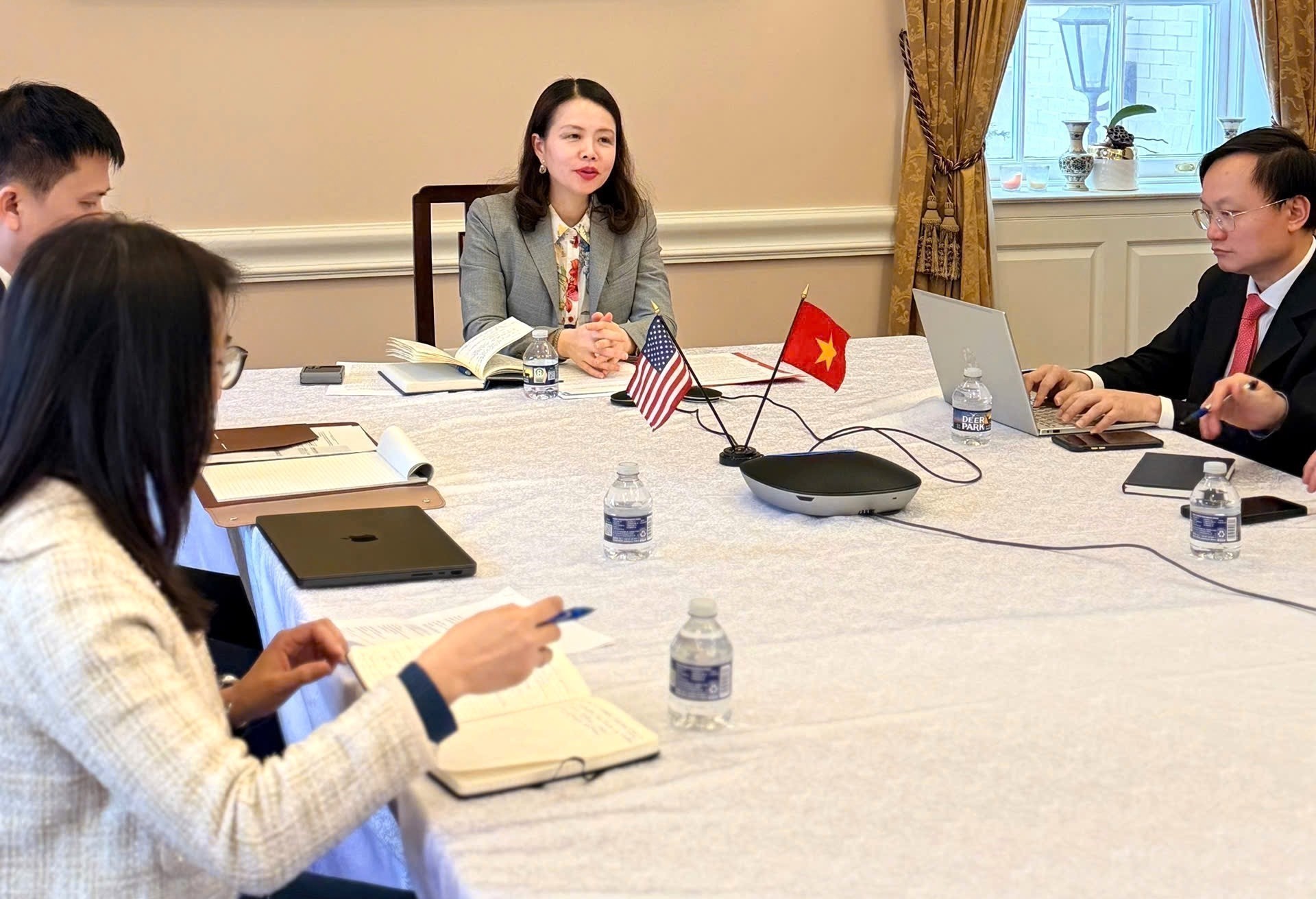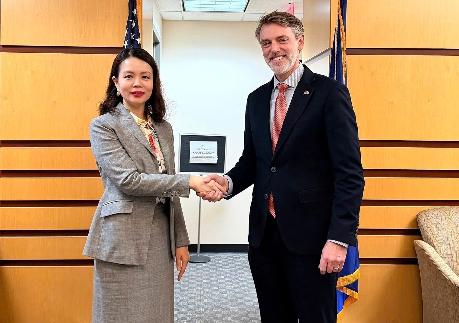 Thứ trưởng Ngoại giao Nguyễn Minh Hằng và Thứ trưởng Ngoại giao Mỹ Allison Hooker. Ảnh: TTXVN phát