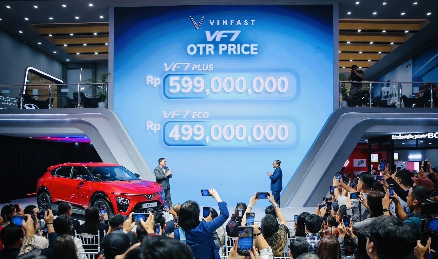 Mức giá của mẫu xe được công bố tại thị trường Indonesia. Ảnh: Đỗ Quyên - PV TTXVN tại Indonesia