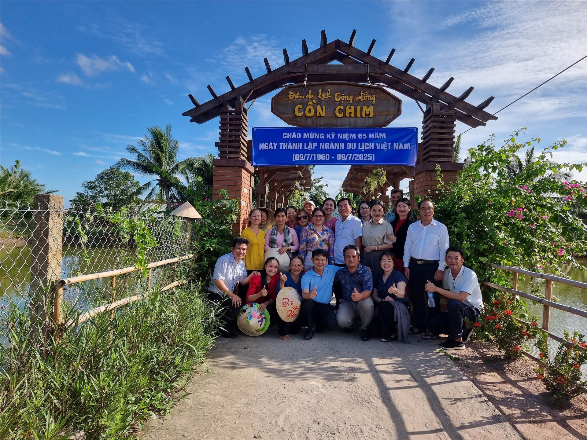 Du khách tham quan và chụp hình lưu niệm tại Cồn Chim (Vĩnh Long). Ảnh: TTXVN phát