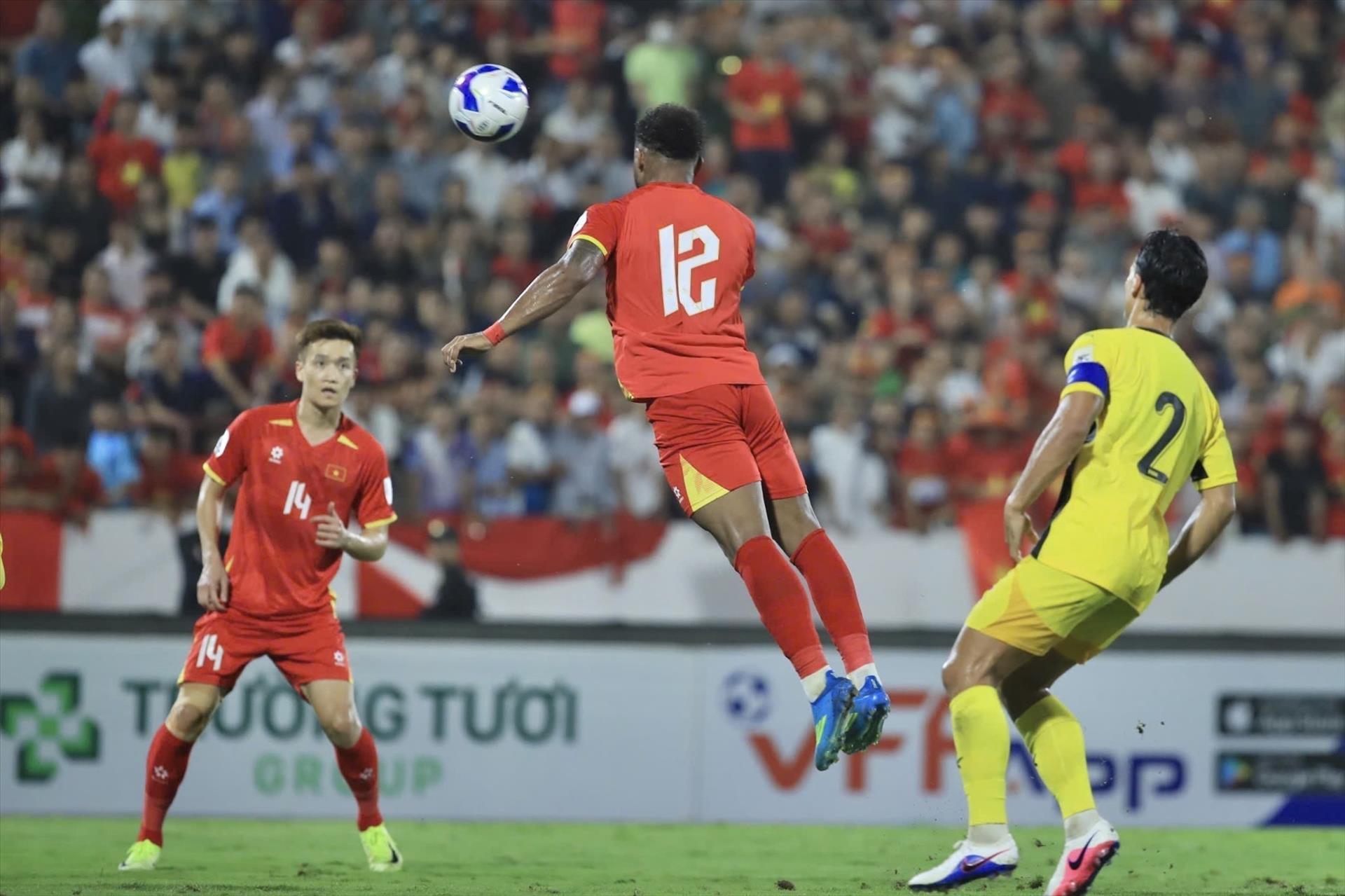Xuân Son ghi liên tiếp 2 bàn từ các pha đánh đầu ở phút 51 và 59, nâng tỷ số lên 3-0 cho đội tuyển Việt Nam. Ảnh: Minh Quyết - TTXVN Xuân Son ghi liên tiếp 2 bàn từ các pha đánh đầu ở phút 51 và 59, nâng tỷ số lên 3-0 cho đội tuyển Việt Nam. Ảnh: Minh Quyết/TTXVN