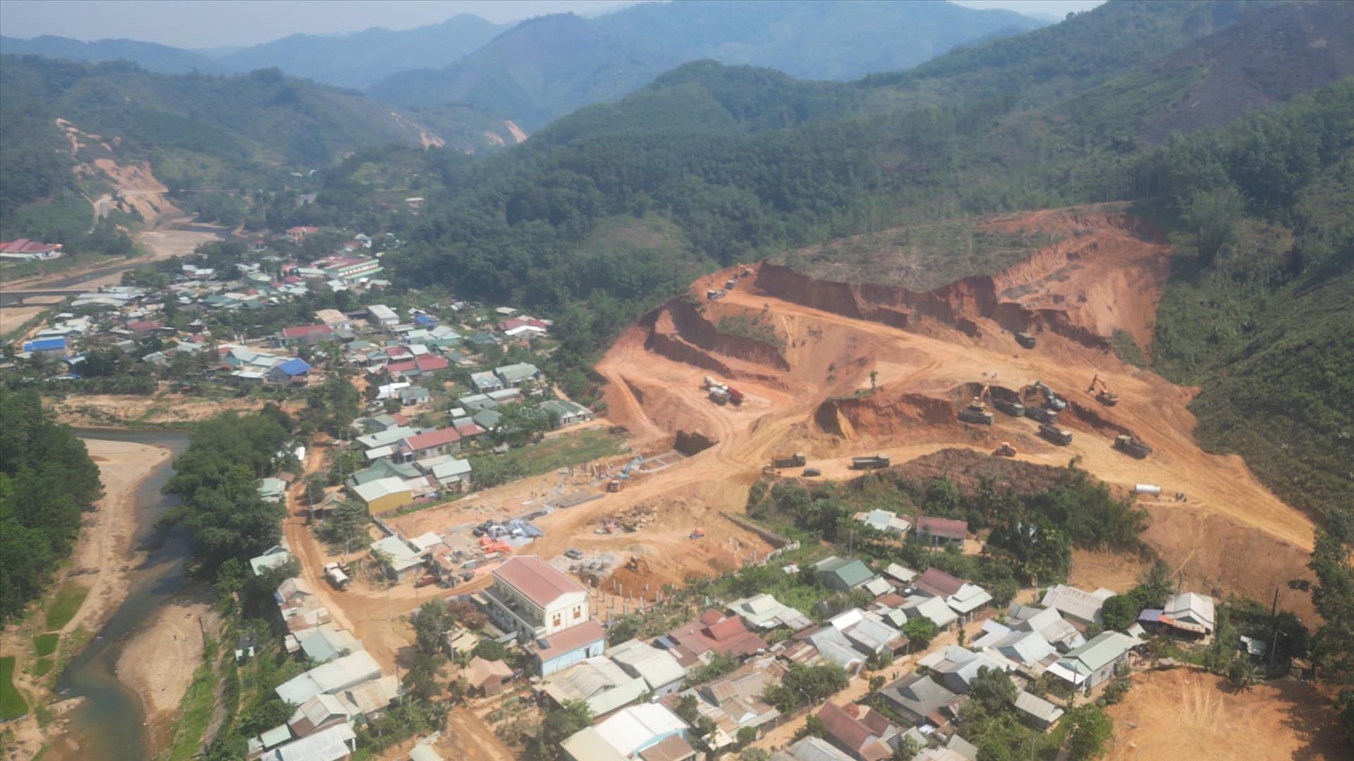 Điều kiện thi công ở khu vực đồi núi cao khiến công tác xử lý mặt bằng gặp nhiều khó khăn. Ảnh: Xuân Quý TTXVN