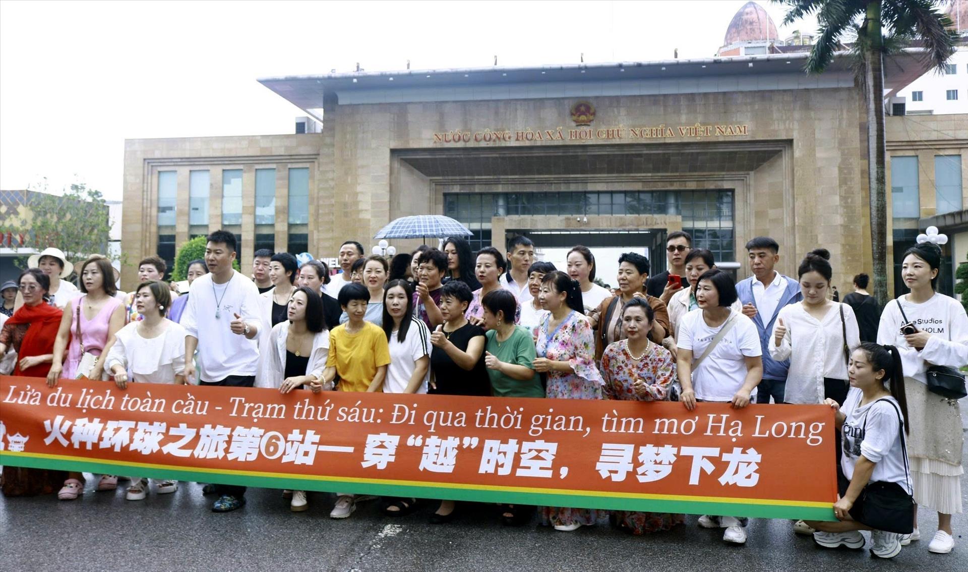 Chào đón đoàn khách du lịch, Chủ tịch UBND phường Móng Cái 1 Đỗ Văn Tuấn đã tặng hoa, bày tỏ lòng mến khách, sự trân trọng đối với du khách quốc tế đã chọn Móng Cái, Quảng Ninh làm điểm đến, thể hiện tinh thần, thái độ tiếp đón thân thiện, trọng thị, chu đáo, nâng cao hình ảnh du lịch tỉnh Quảng Ninh trong mắt bạn bè quốc tế.
