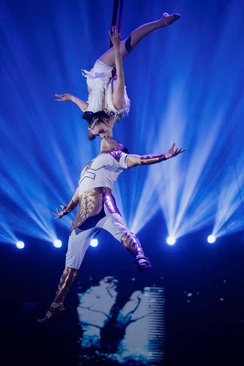 Tiết mục đu dây đôi “Duo Love” do Nghệ sỹ Ưu tú Thanh Tuấn và Nghệ sỹ Ưu tú Thu Hương biểu diễn. Nguồn: Liên đoàn Xiếc Việt Nam