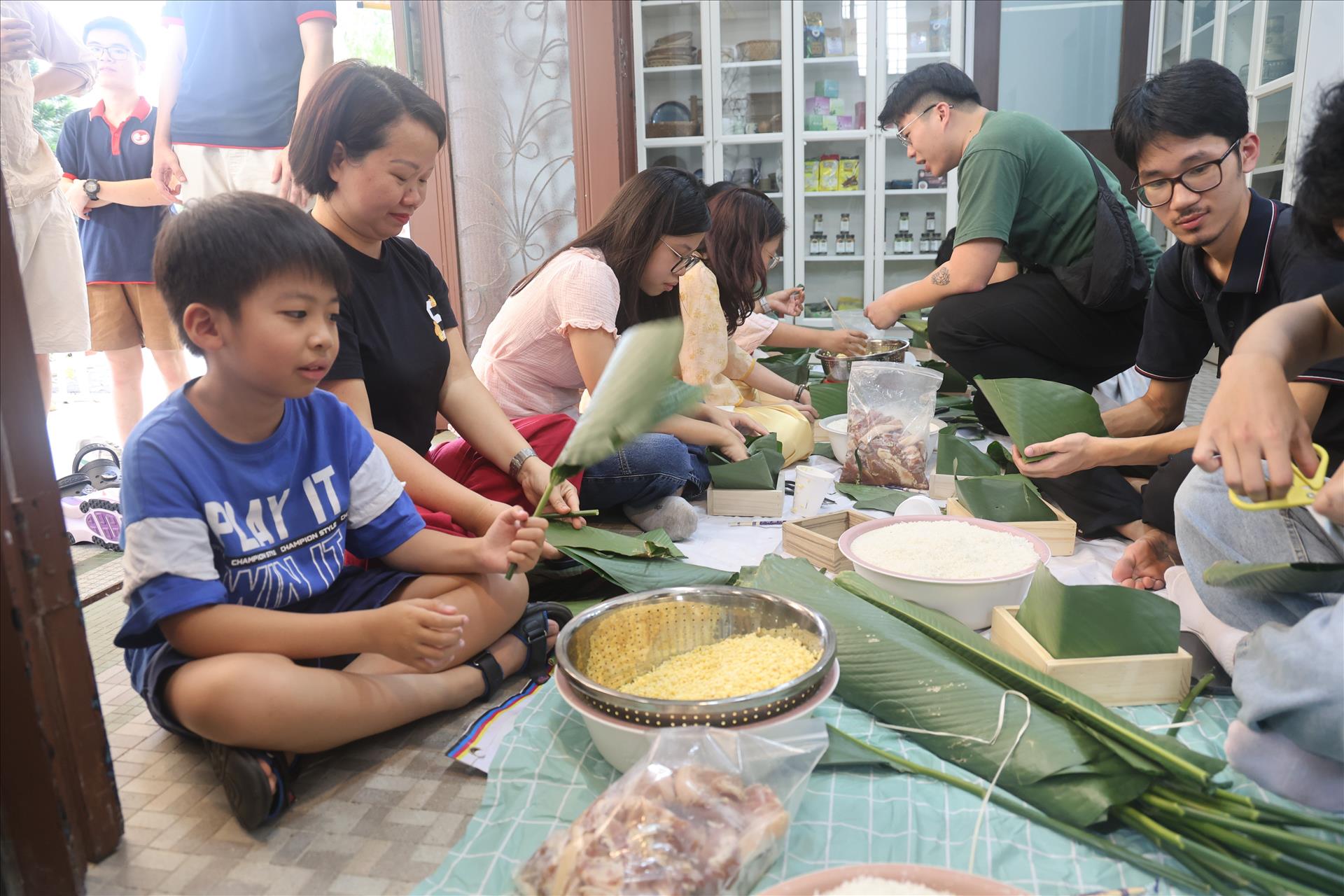 Hoạt động gói bánh chưng tại Lễ hội. Ảnh: Việt Dũng (P/v TTXVN tại Singapore)