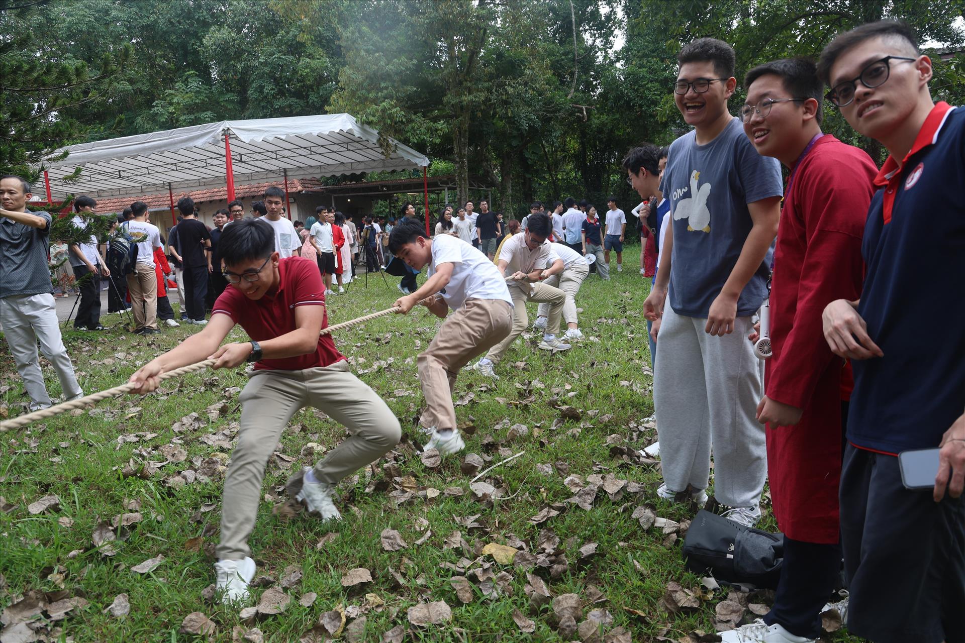 Du học sinh Việt Nam tại Singapore hào hứng tham gia trò chơi kéo co. Ảnh: Việt Dũng (P/v TTXVN tại Singapore)