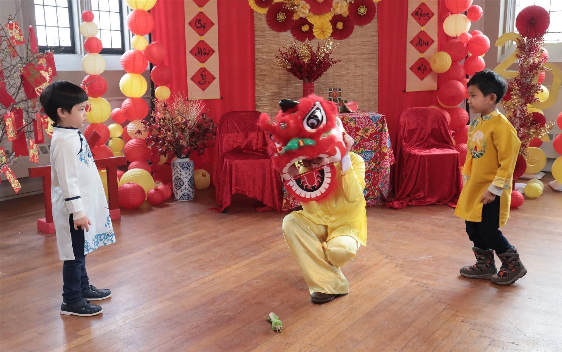 Tiết mục Múa lân "cây nhà lá vườn" tại sự kiện. Ảnh: Lê Hoàng - Phóng viên TTXVN tại Mỹ