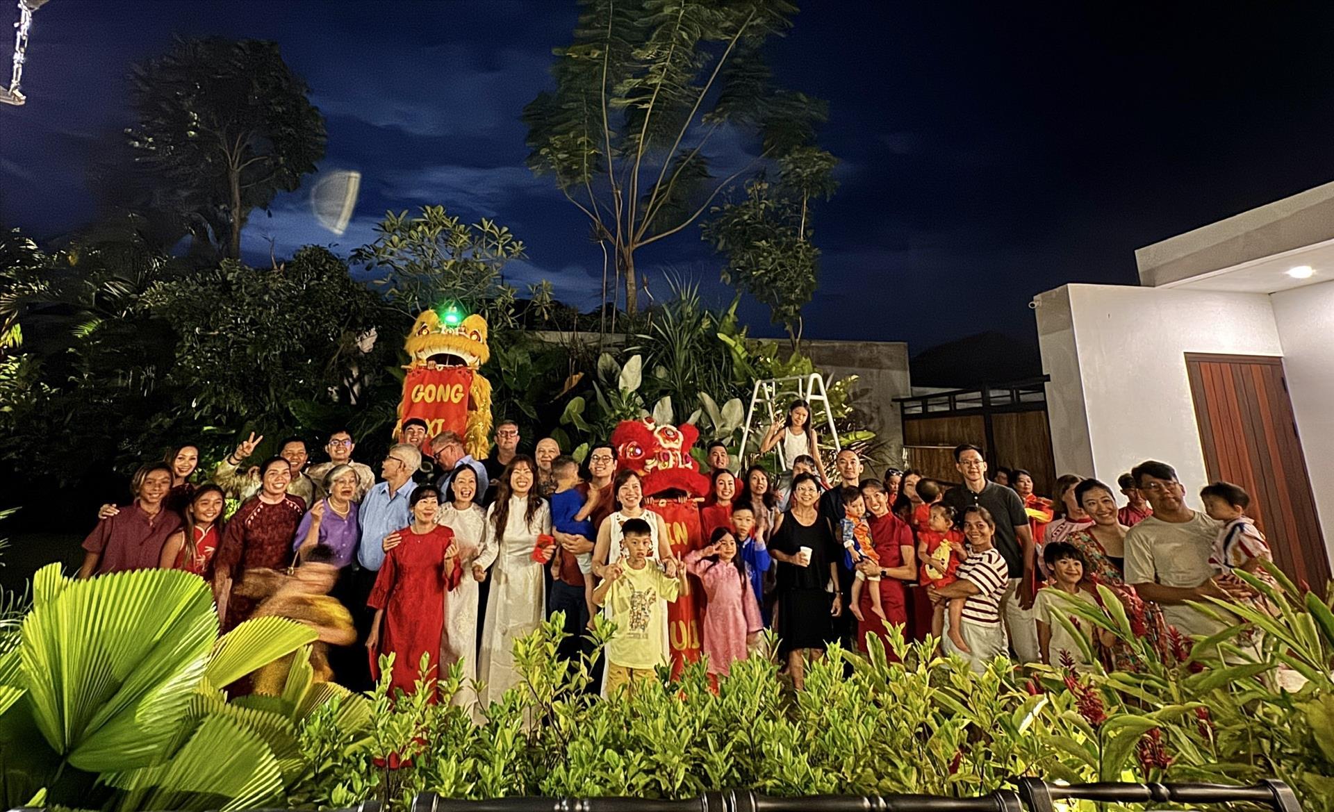 Căn nhà của vợ chồng chị Trương Mỹ Quí và anh Brian hôm nay mở rộng cửa đón cộng đồng người Việt Nam tại Bali tụ họp đón Tết. Trong một không gian ấm cúng, Tết Việt được thắp lên bằng những tiếng cười, sự sum họp như một gia đình của những người đồng hương tìm thấy nhau nơi đất khách. Giữa không gian này, có thể cảm nhận trọn vẹn một không khí Tết rất Việt giữa lòng Bali.