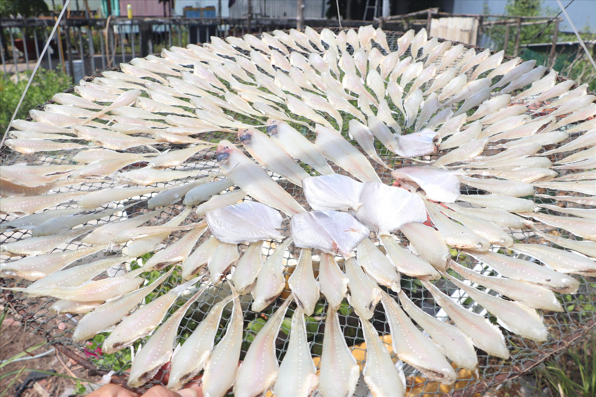 Những mẻ cá khô tươi ngon được người dân Đất Mũi phơi dưới nắng Tết. Ảnh: Tuấn Phi-TTXVN