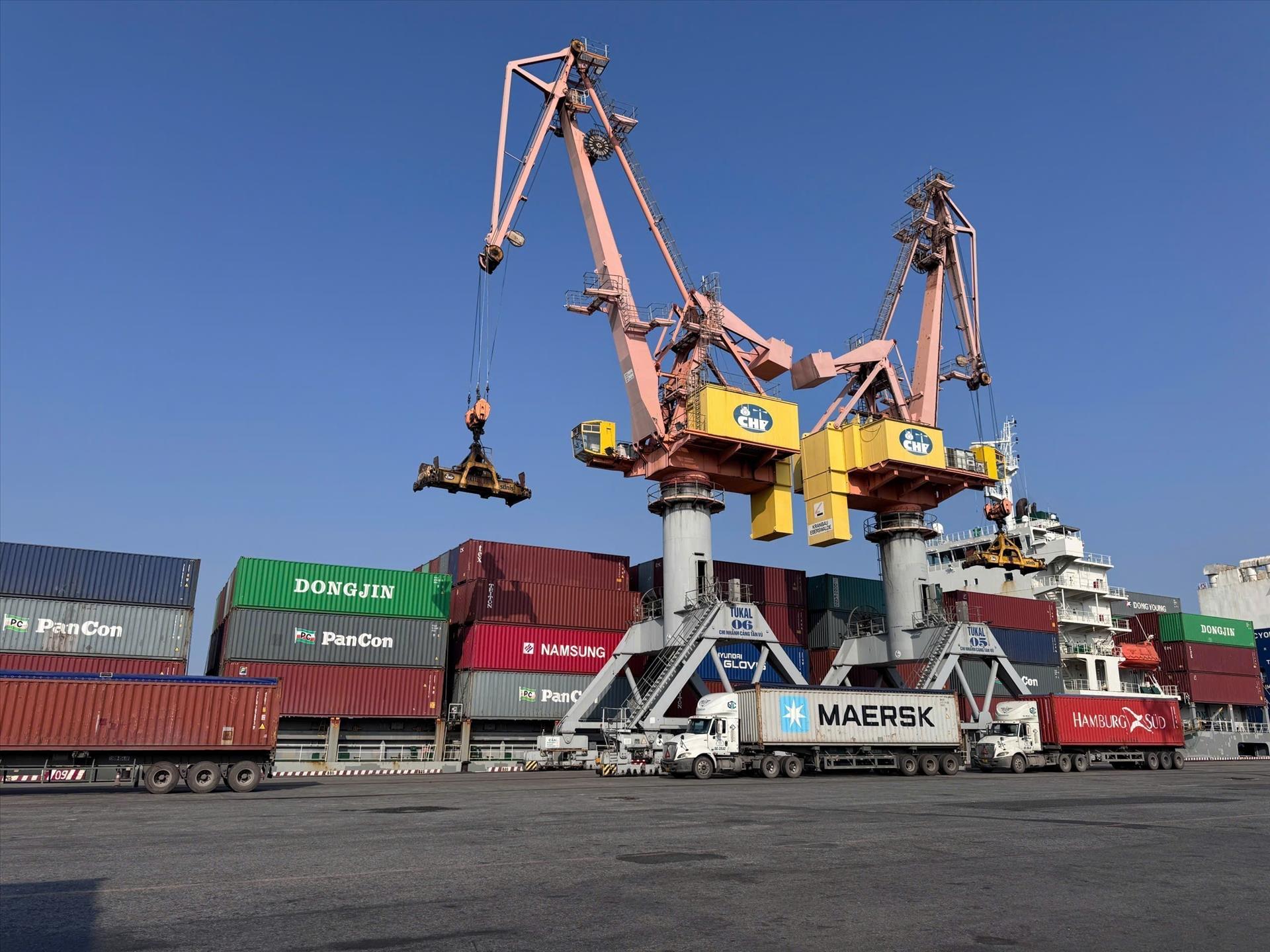 phát Tàu cập cảng làm hàng xuyên Tết Nguyên đán Bính Ngọ tại bến cảng thuộc Công ty cổ phần Cảng Hải Phòng. Ảnh: TTXVN phát