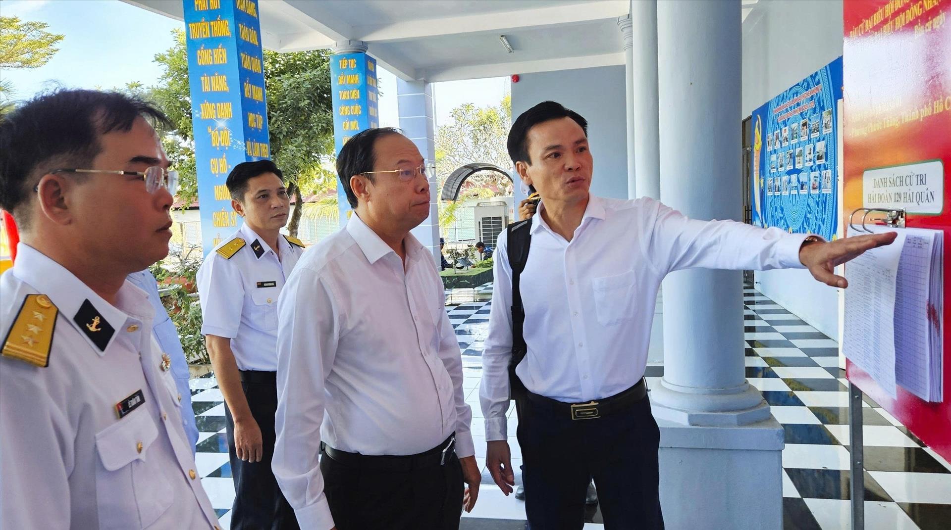 Báo cáo với Đoàn công tác về việc chuẩn bị bầu cử đại biểu Quốc hội khóa XVI và bầu cử đại biểu Hội đồng nhân dân các cấp nhiệm kỳ 2026-2031, Đại tá Đỗ Hồng Duyên, Phó Chính ủy Bộ Tư lệnh Vùng 2 Hải quân cho biết, đơn vị đã hoàn tất rà soát, lập danh sách cử tri để tổng hợp báo cáo cơ quan cấp trên và địa phương. Đơn vị cũng tổ chức tuyên truyền về công tác bầu cử, đặc biệt là với ngư dân đánh bắt xa bờ. Công tác trang trí khánh tiết và các điều kiện đảm bảo cho bầu cử sớm đã được triển khai. Dù tổ chức tại vùng biển xa, mọi quy trình và quy tắc bầu cử vẫn được đảm bảo tiến hành chặt chẽ.