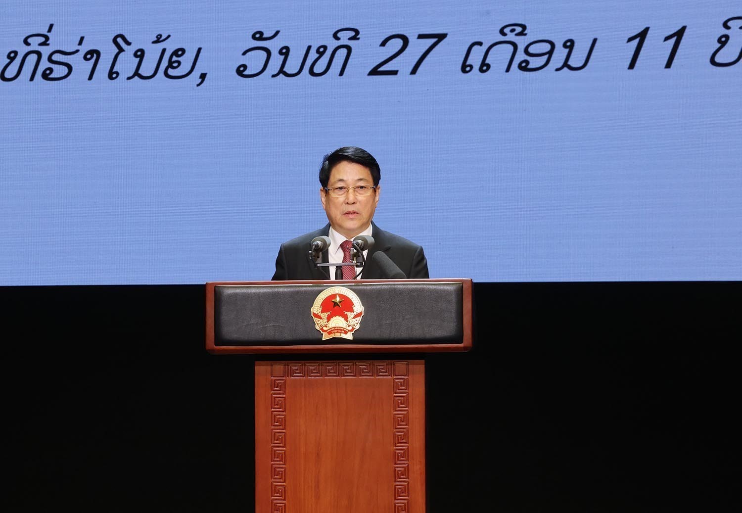 Nhân buổi lễ trọng thể thắm tình đoàn kết hữu nghị, anh em, thay mặt lãnh đạo Đảng, Nhà nước và nhân dân Việt Nam, Chủ tịch nước một lần nữa chúc nhân dân các dân tộc Lào anh em, dưới sự lãnh đạo sáng suốt và đúng đắn của Đảng Nhân dân Cách mạng Lào, đứng đầu là đồng chí Tổng Bí thư, Chủ tịch nước Thongloun Sisoulith, sẽ tiếp tục giành được nhiều thắng lợi to lớn hơn nữa trong công cuộc xây dựng và bảo vệ đất nước; thực hiện thắng lợi Nghị quyết Đại hội XI và Kế hoạch phát triển kinh tế - xã hội 5 năm 2021 - 2025, tiến tới tổ chức thành công Đại hội Đảng toàn quốc Đảng Nhân dân Cách mạng Lào lần thứ XII; chúc mối quan hệ hữu nghị vĩ đại, đoàn kết đặc biệt, hợp tác toàn diện, thủy chung, trong sáng Việt Nam - Lào, Lào - Việt Nam mãi mãi xanh tươi, đời đời bền vững.