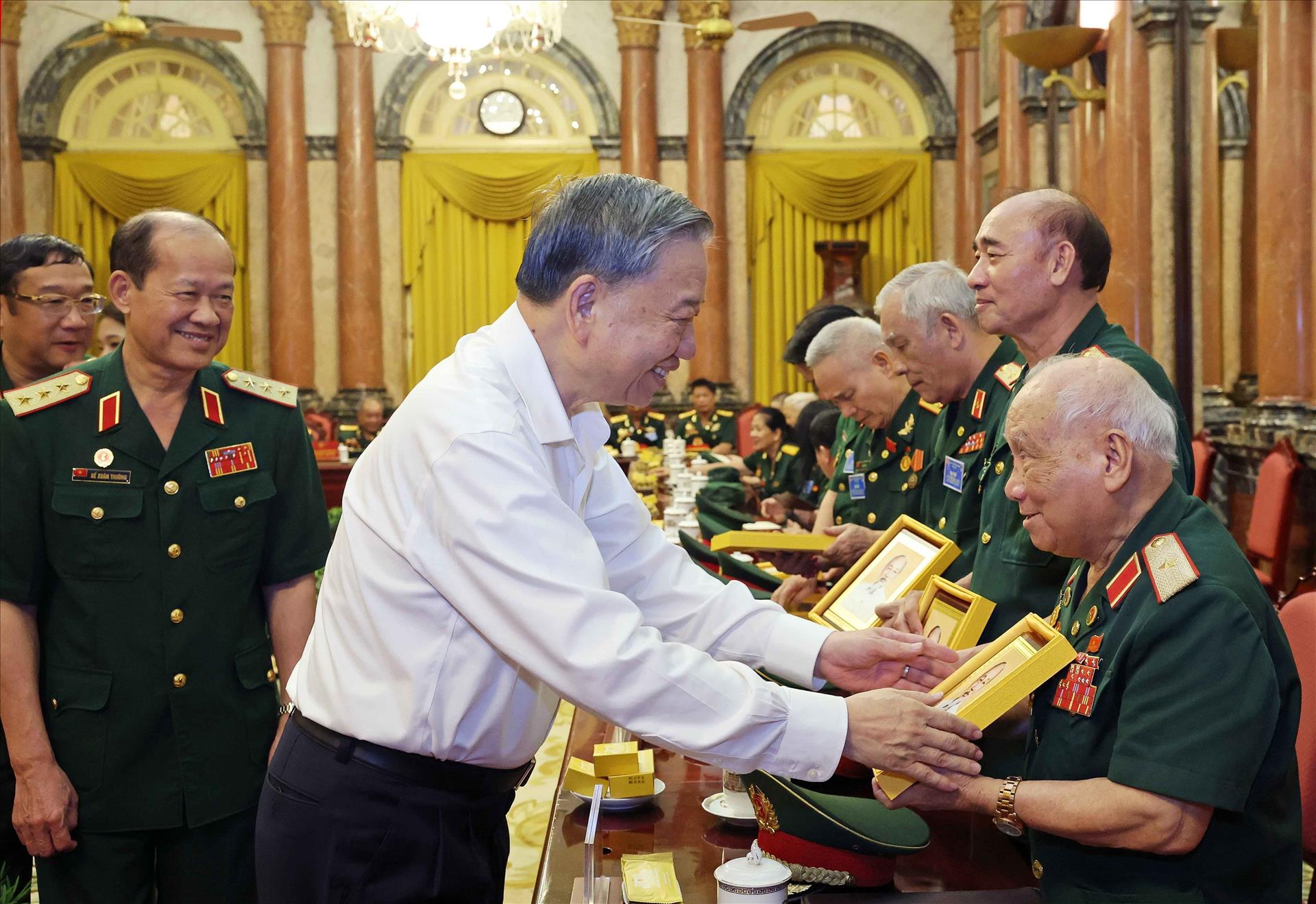 Thay mặt lãnh đạo Đảng, Nhà nước, Chủ tịch nước gửi đến các cựu chiến binh lời thăm hỏi ân cần, tình cảm thân thiết và lời chúc mừng tốt đẹp nhất, đồng thời bày tỏ mong muốn các cựu chiến binh tiếp tục phát huy truyền thống “Bộ đội Cụ Hồ”, xứng đáng với truyền thống của Quân đội và Công an nhân dân “Vì nước quên thân, vì dân phục vụ” trong sự nghiệp xây dựng và bảo vệ Tổ quốc.