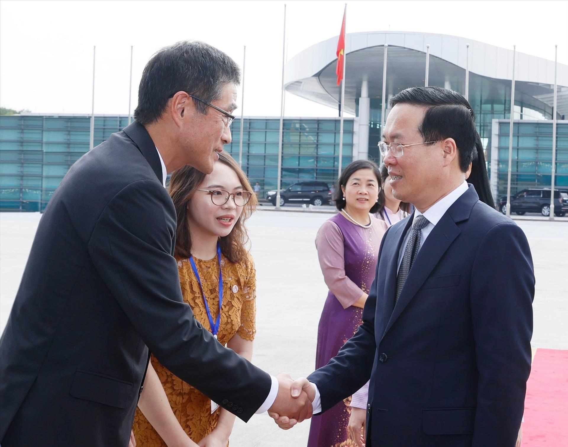 Tháp tùng Chủ tịch nước Võ Văn Thưởng và Phu nhân Phan Thị Thanh Tâm có: Phó Thủ tướng Chính phủ Trần Lưu Quang; Chủ nhiệm Văn phòng Chủ tịch nước Lê Khánh Hải; Bộ trưởng Bộ Ngoại giao Bùi Thanh Sơn; Bộ trưởng Bộ Giao thông Vận tải Nguyễn Văn Thắng; Thứ trưởng Bộ Quốc phòng Hoàng Xuân Chiến; Thứ trưởng Bộ Công an Trần Quốc Tỏ; Bí thư Tỉnh ủy Bình Thuận Dương Văn An; Bí thư Tỉnh ủy Vĩnh Long Bùi Văn Nghiêm; Chủ tịch Viện Hàn lâm Khoa học và Công nghệ Việt Nam Châu Văn Minh; Bí thư Thành ủy Cần Thơ Nguyễn Văn Hiếu và Đại sứ Việt Nam tại Nhật Bản Phạm Quang Hiệu.