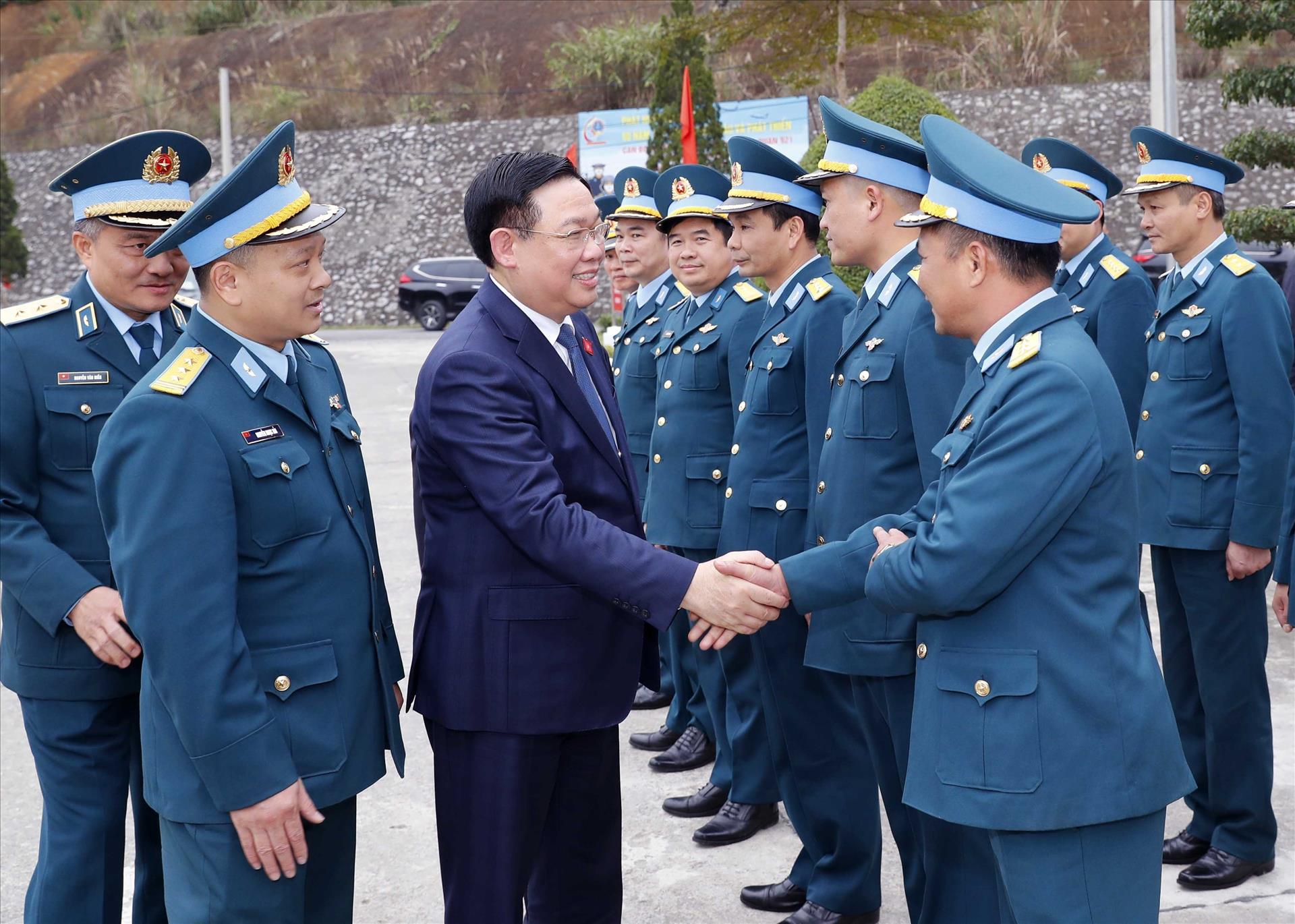 Tiếp tục chuyến thăm và làm việc, chúc Tết tại Yên Bái, chiều cùng ngày, Chủ tịch Quốc hội và Đoàn công tác Trung ương tới thăm, chúc Tết cán bộ, chiến sĩ Trung đoàn Không quân 921, Sư đoàn 371, Quân chủng Phòng không-Không quân nhân dịp Xuân mới Giáp Thìn 2024 và kỷ niệm 60 năm Ngày truyền thống của Trung đoàn (3/2/1964 - 3/2/2024).