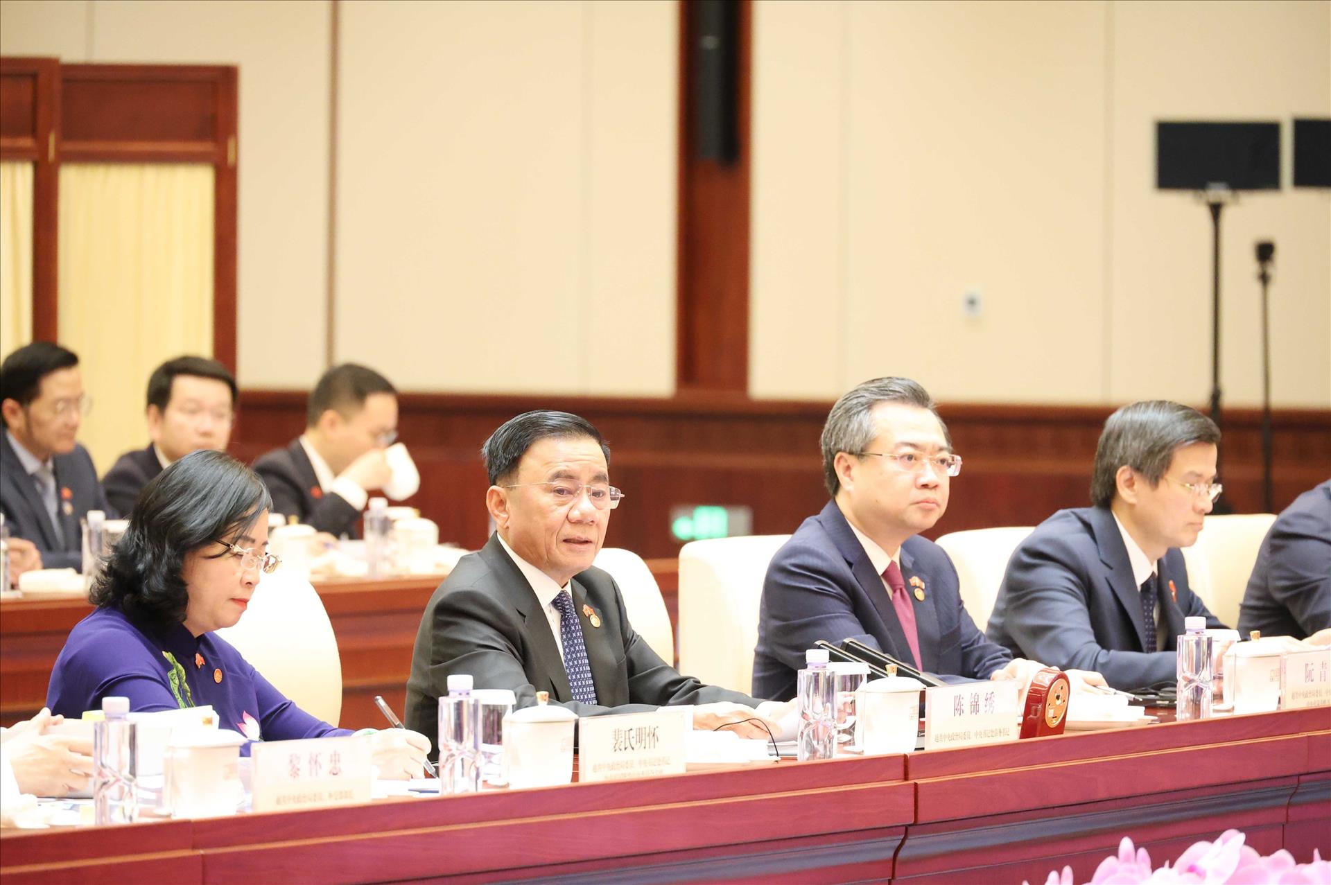 Tại cuộc hội đàm, đồng chí Thường trực Ban Bí thư Trần Cẩm Tú chân thành cảm ơn Đảng, Nhà nước Trung Quốc đã dành sự đón tiếp chu đáo, nồng hậu đối với chuyến thăm cấp Nhà nước của Tổng Bí thư, Chủ tịch nước Tô Lâm và Đoàn đại biểu cấp cao Việt Nam đến Trung Quốc. Hai bên bày tỏ vui mừng dưới sự lãnh đạo, định hướng của hai đồng chí Tổng Bí thư, Chủ tịch nước, quan hệ giữa hai Đảng, hai nước Việt Nam - Trung Quốc phát triển tích cực, toàn diện và ngày càng đi vào chiều sâu, thực chất. Đặc biệt, giao lưu, hợp tác kênh Đảng không ngừng phát huy vai trò tiên phong, định hướng chiến lược trong việc kịp thời quán triệt, đôn đốc thực hiện hiệu quả nhận thức chung cấp cao.