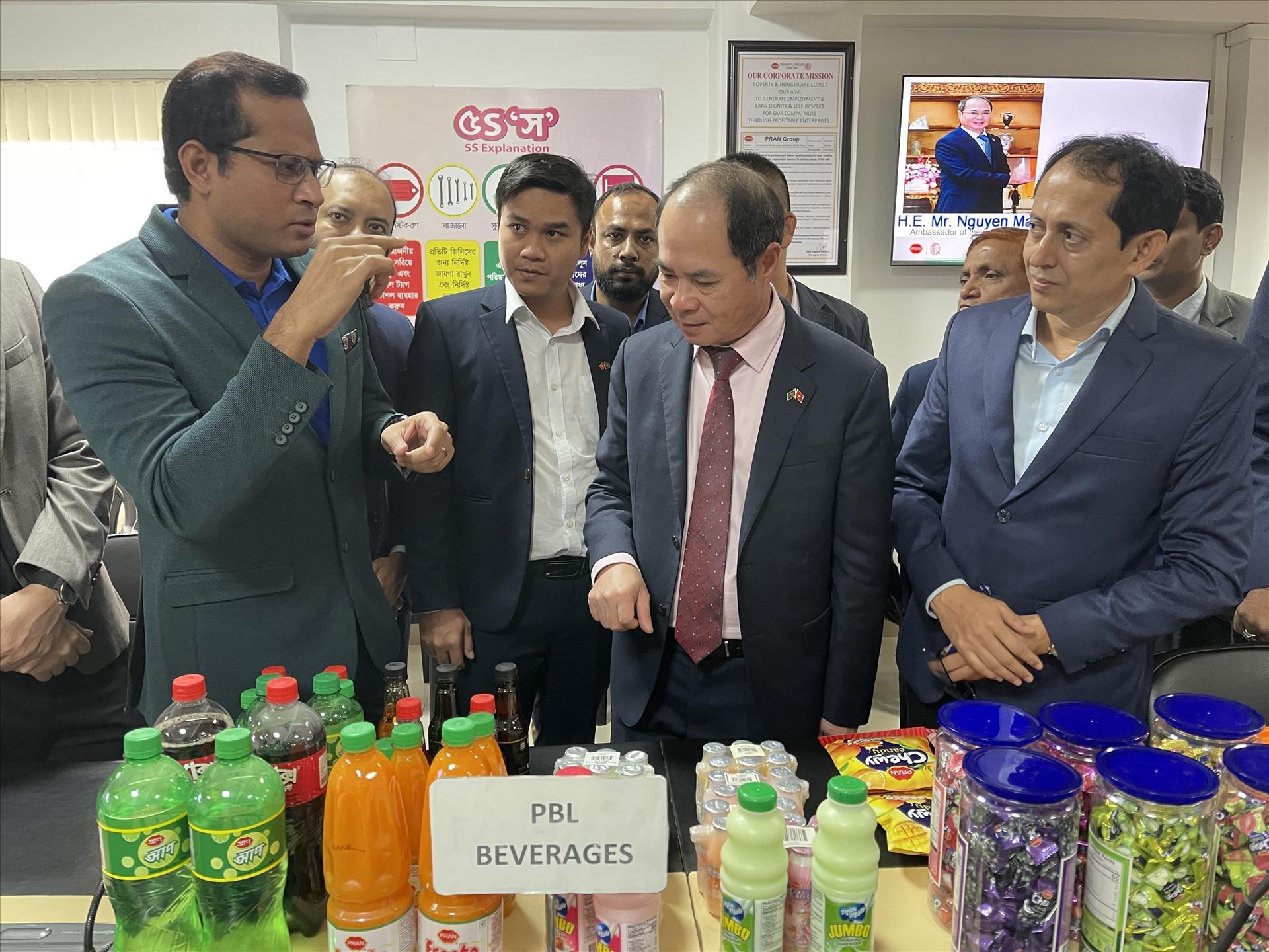 Tại tỉnh Habiganj, Đại sứ cùng đoàn công tác đến thăm và làm việc với ban lãnh đạo khu công nghiệp sản xuất đa lĩnh vực thuộc Tập đoàn PRAN-RFL Group. Đây là một trong những doanh nghiệp sản xuất và xuất khẩu lớn nhất tại Bangladesh, được biết đến với số lượng công nhân lớn (hơn 100.000 lao động) và các chính sách hỗ trợ đặc biệt dành cho công nhân và gia đình của họ. Tại cuộc làm việc, trong không khí cởi mở, nhóm doanh nghiệp Việt Nam đã có cơ hội kết nối, giao lưu trực tiếp với các lãnh đạo Tập đoàn. Hai bên tích cực trao đổi, tăng cường hiểu biết về thế mạnh của nhau, bước đầu đã tìm được cơ hội hợp tác trên các lĩnh vực như xuất - nhập khẩu thực phẩm, kỹ thuật bảo quản và đóng gói sản phẩm, chia sẻ kinh nghiệm và chuyển giao công nghệ sản xuất…