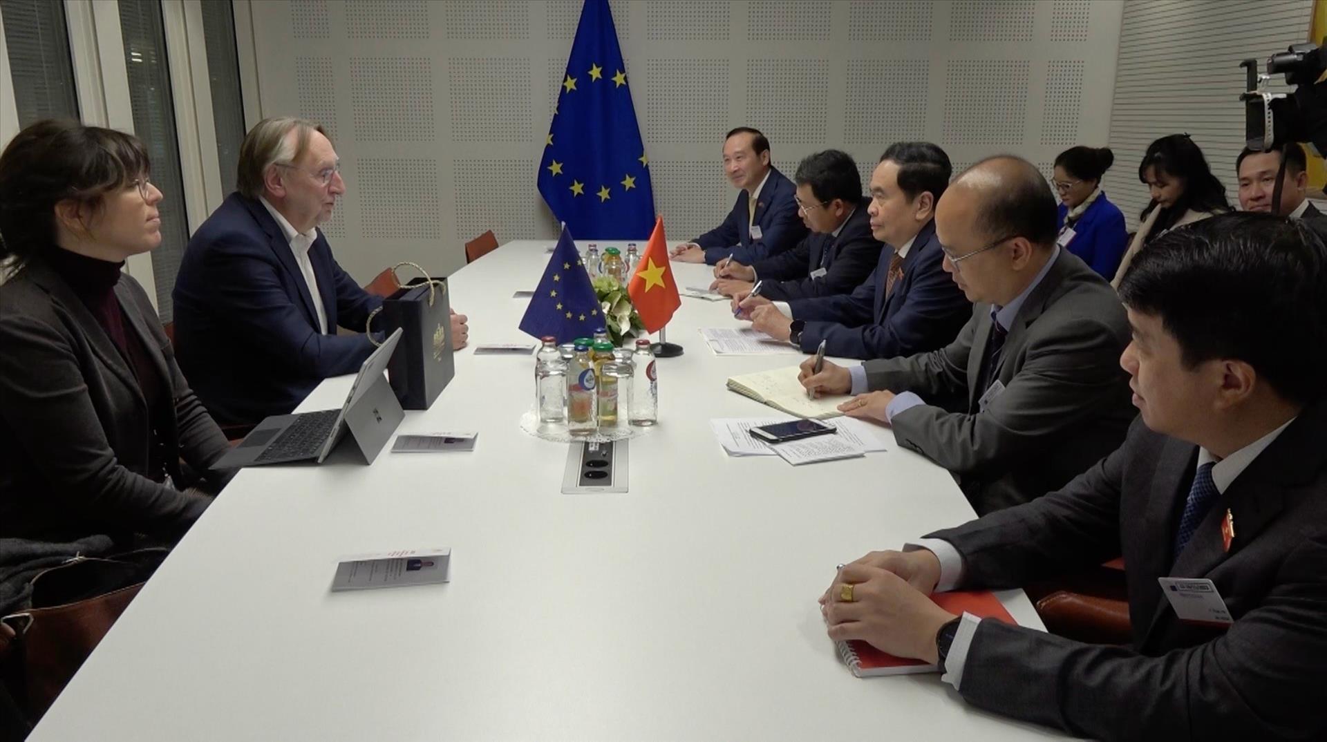 Phó Chủ tịch thường trực Quốc hội đánh giá cao việc hai bên duy trì kênh đối thoại liên nghị viện thực chất, hiệu quả thông qua trao đổi đoàn, cùng với đó là các cơ chế hợp tác triển khai Hiệp định thương mại tự do Việt Nam – EU (EVFTA), góp phần thúc đẩy các ưu tiên, giải tỏa các vướng mắc trong quan hệ Việt Nam - EU.