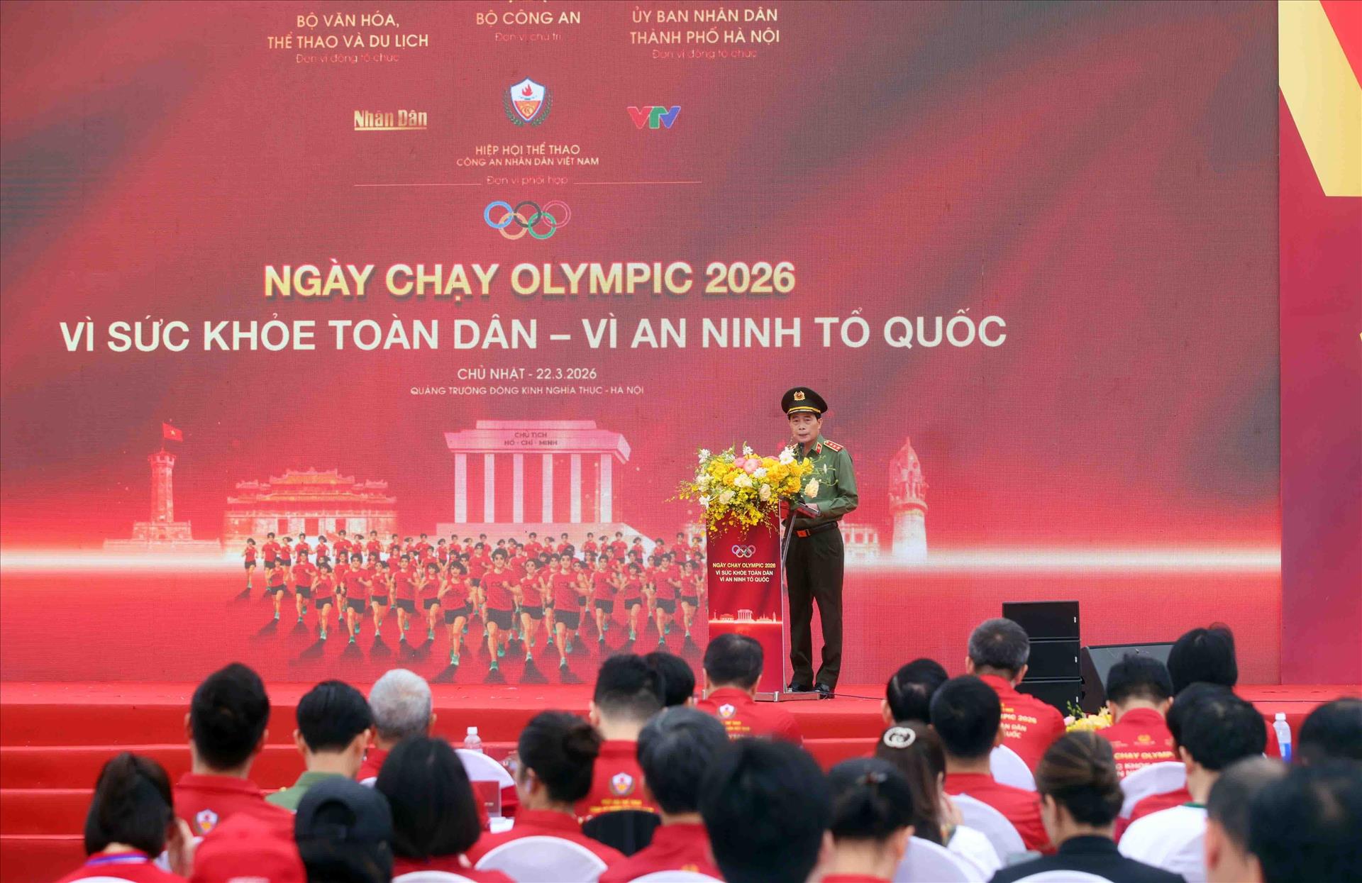 Tại buổi lễ, Thượng tướng Lê Quốc Hùng, Thứ trưởng Bộ Công an nhấn mạnh, sinh thời, Chủ tịch Hồ Chí Minh kính yêu đều luôn quan tâm đặc biệt đến phong trào toàn dân rèn luyện sức khỏe. Ngày 27/3/1946, Người kêu gọi: “Giữ gìn dân chủ, xây dựng nước nhà, gây đời sống mới, việc gì cũng cần có sức khỏe mới làm thành công. Mỗi một người dân yếu ớt tức là cả nước yếu ớt, mỗi người dân mạnh khỏe tức là góp phần cho cả nước mạnh khỏe. Vậy nên luyện tập thể dục, bồi bổ sức khỏe là bổn phận của mỗi một người yêu nước... Dân cường thì nước thịnh. Tôi mong đồng bào ta ai cũng gắng tập thể dục. Tự Tôi, ngày nào Tôi cũng tập". 80 năm qua, lời kêu gọi của Người đã cổ vũ, động viên toàn dân, toàn quân khắp mọi miền đất nước, tích cực tham gia phong trào luyện tập. Lời kêu gọi đó đã trở thành kim chỉ nam, dẫn lối cho phong trào thể dục, thể thao cả nước nói chung và phong trào rèn luyện sức khỏe của cán bộ, chiến sĩ lực lượng Công an nhân dân nói riêng.