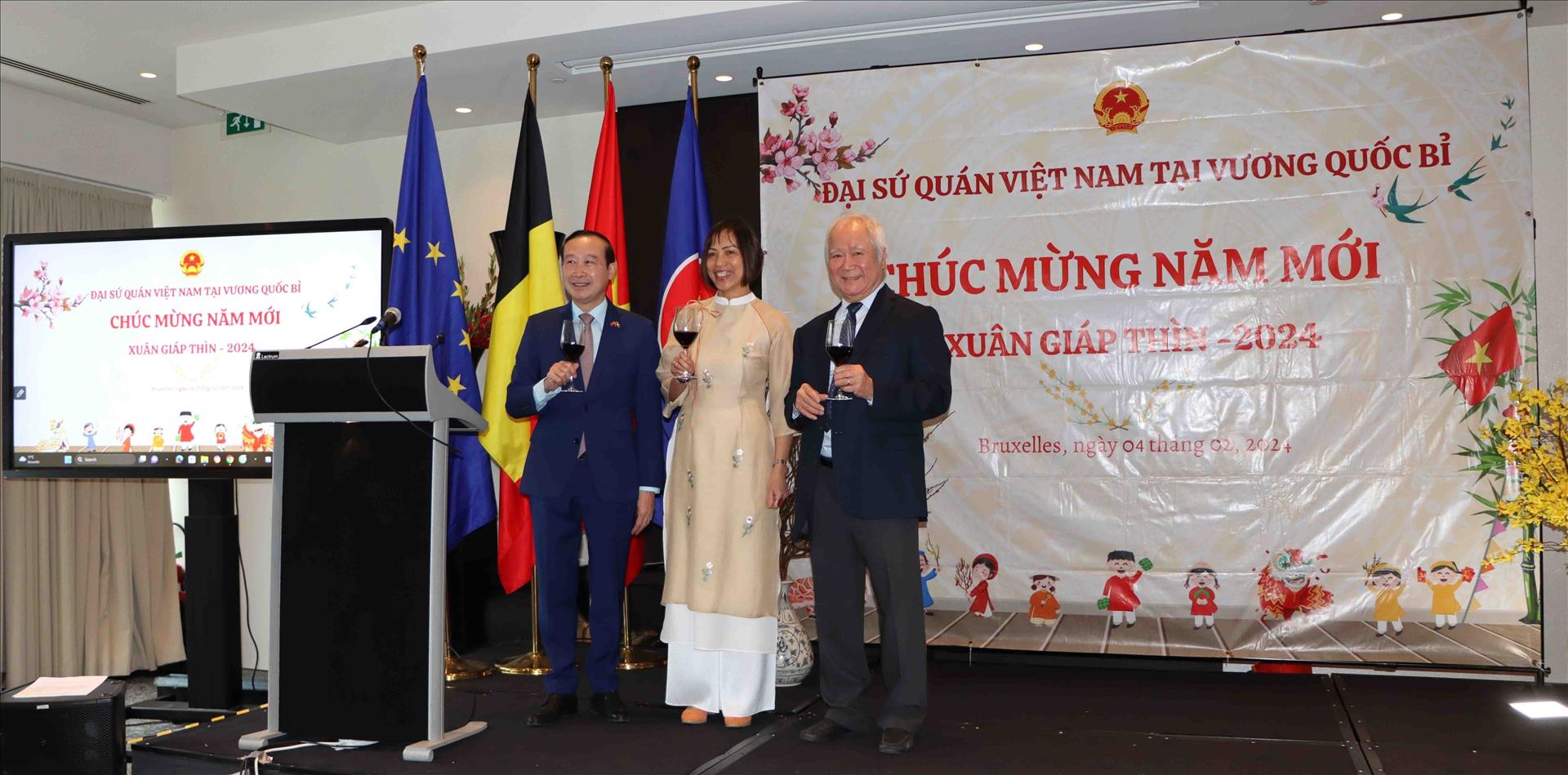 Theo phóng viên TTXVN tại Brussels, Đại sứ Việt Nam tại Vương quốc Bỉ, kiêm nhiệm Đại công quốc Luxembourg, Trưởng Phái đoàn Việt Nam bên cạnh Liên minh châu Âu (EU) Nguyễn Văn Thảo đã điểm lại tình hình thế giới và trong nước trong thời gian qua. Đại sứ nhấn mạnh đến những biến động phức tạp trên bản đồ quốc tế, từ chiến tranh, xung đột đến khủng hoảng kinh tế. Đại sứ cũng nêu bật sự kiên trì và đoàn kết của Việt Nam trong nỗ lực vượt qua khó khăn, đạt được nhiều thành tựu ấn tượng, đặc biệt là trong lĩnh vực kinh tế. Tổng sản phẩm quốc nội (GDP) trong nước năm 2023 tăng 5,03%, đạt 430 tỷ USD. Việt Nam đã lọt vào nhóm 40 nền kinh tế lớn nhất thế giới và 20 nền kinh tế hàng đầu về thương mại và thu hút đầu tư nước ngoài.