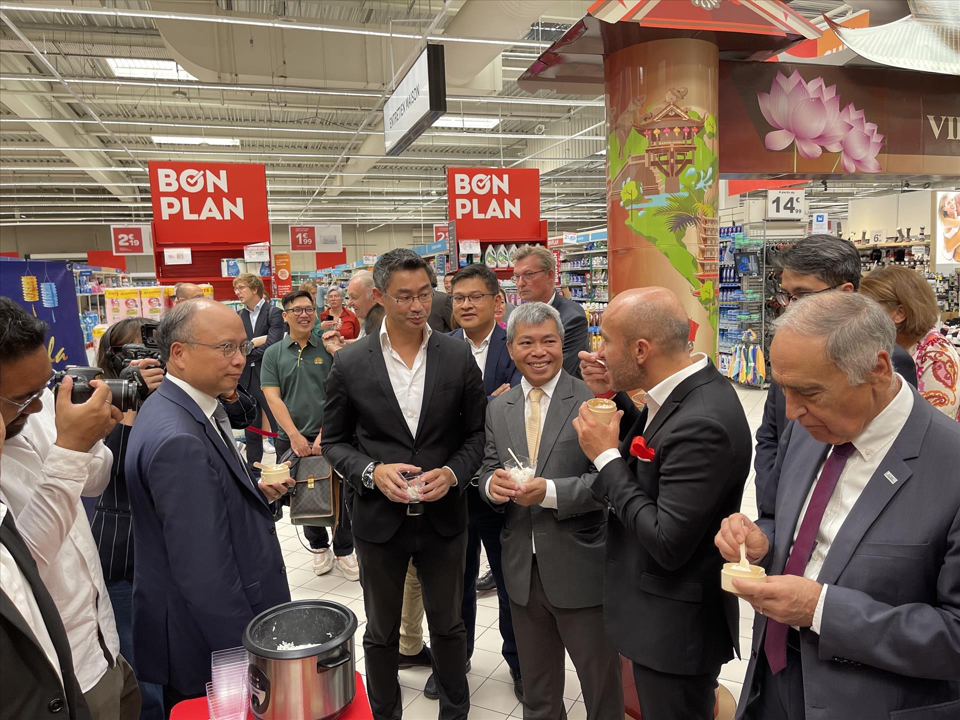 Tham dự lễ khai trương có Đại sứ Việt Nam tại Pháp Đinh Toàn Thắng, Phó Vụ trưởng Vụ Thị trường châu Âu - châu Mỹ, Bộ Công thương Nguyễn Thảo Hiền, Thị trưởng vùng Lorgne André Yuste, Tổng Giám đốc chuỗi siêu thị Carrefour Rami Baitieh và đại diện các nhà xuất khẩu, nhập khẩu cùng đông đảo khách hàng.