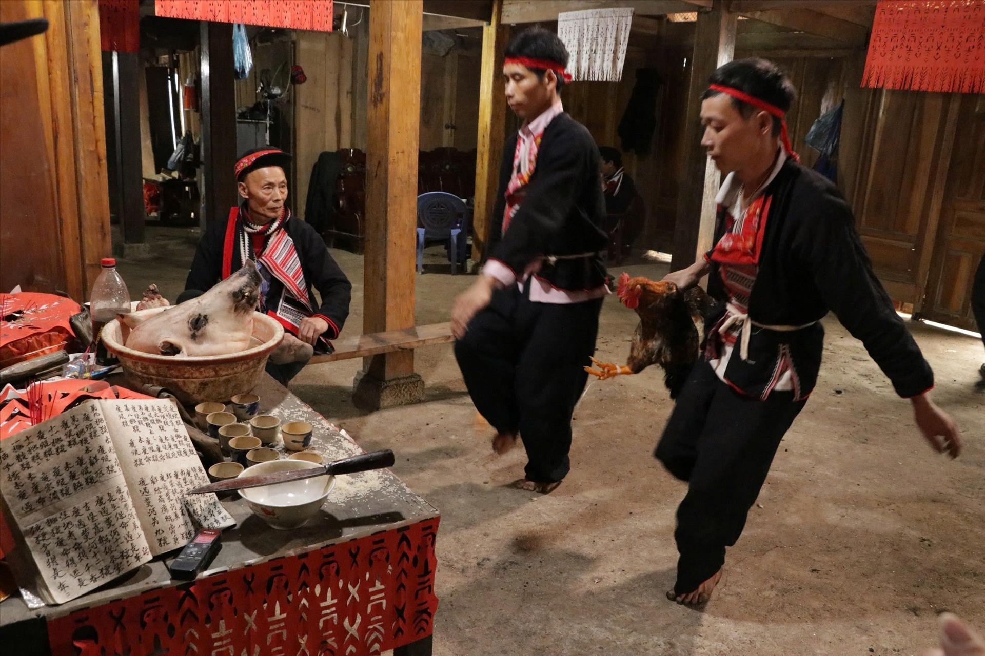 Không gian hành lễ thường là nhà trưởng thôn, nhà chủ lễ hoặc một địa điểm linh thiêng của bản làng. Chủ trì nghi lễ là các thầy cúng, những người nắm giữ tri thức tâm linh của cộng đồng. Trong tiếng khấn trầm đều bằng tiếng Dao, thầy cúng thay mặt cả bản cầu xin các vị thần che chở cho nương rẫy, lúa ngô không sâu bệnh, gia súc không ốm đau, con người mạnh khỏe, yên vui.