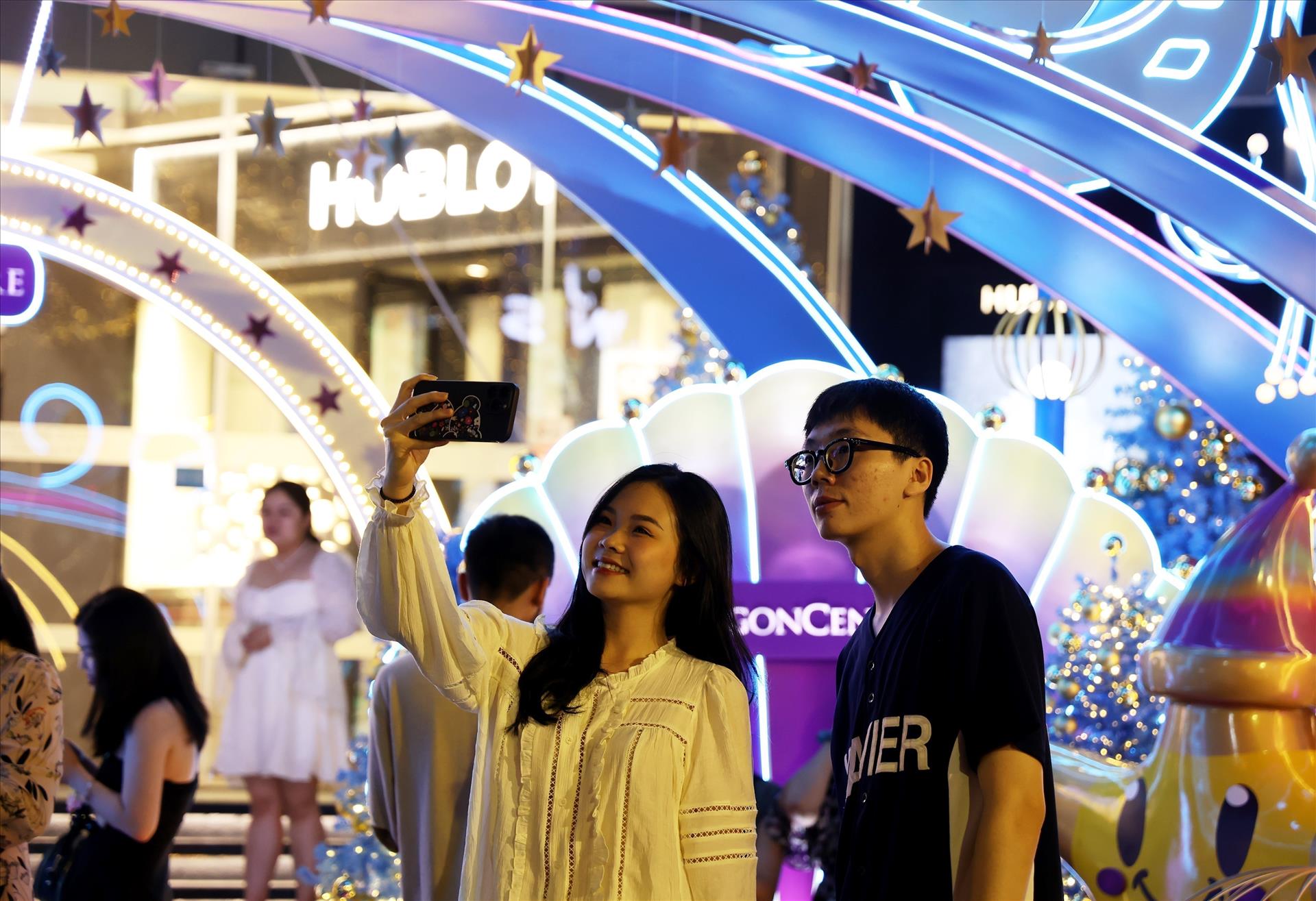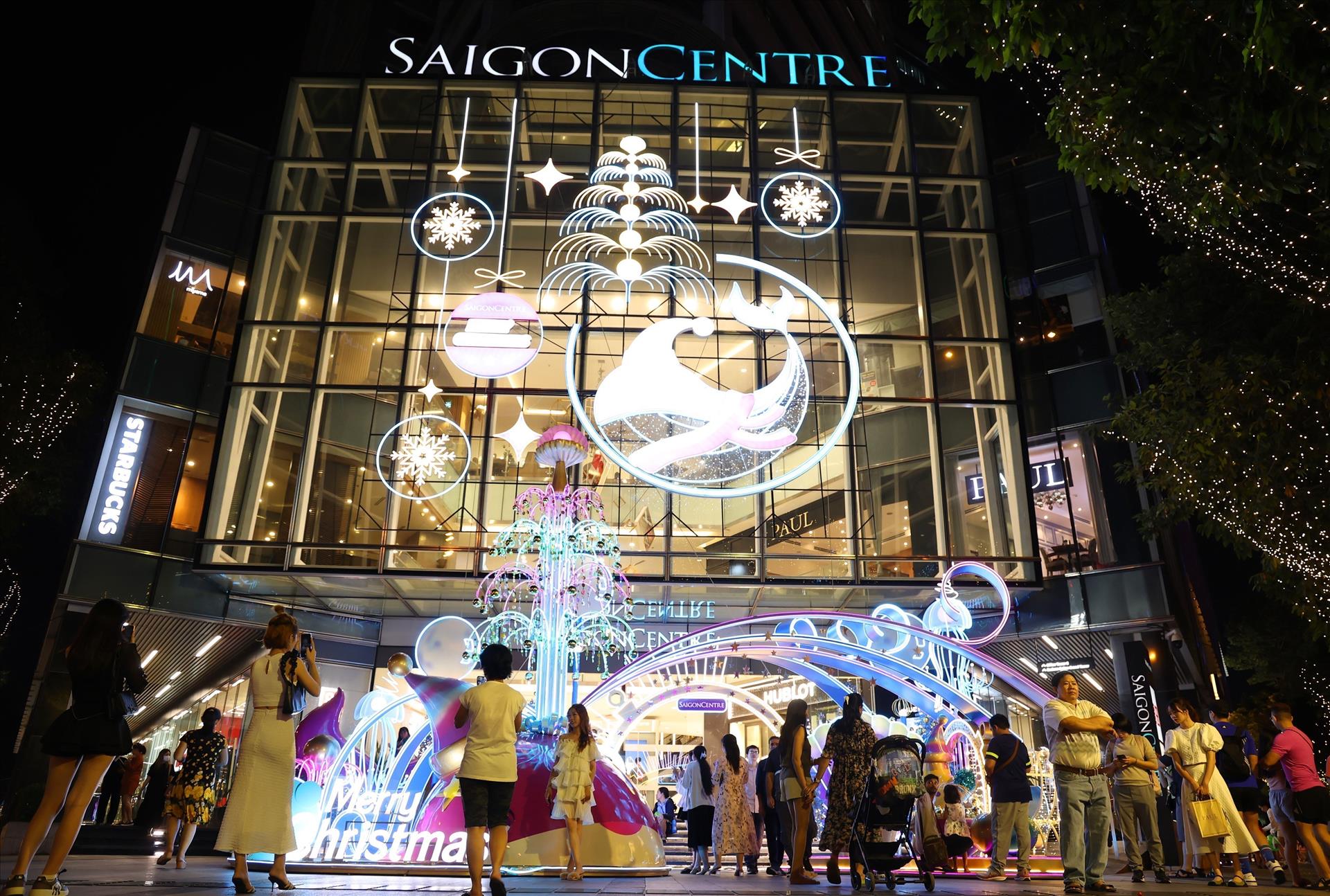 Người dân Thành phố Hồ Chí Minh trải nghiệm không khí Giáng sinh trước Trung tâm thương mại Sài Gòn Centre, Quận 1. Ảnh: Hồng Đạt - TTXVN