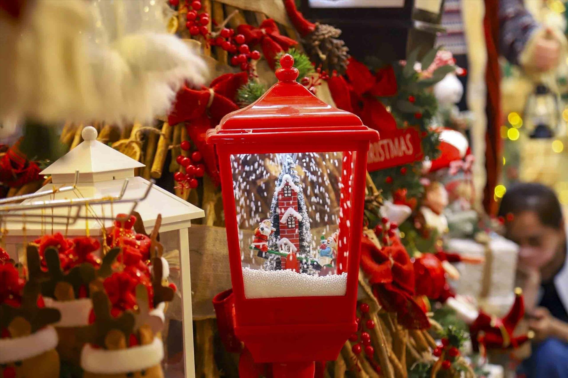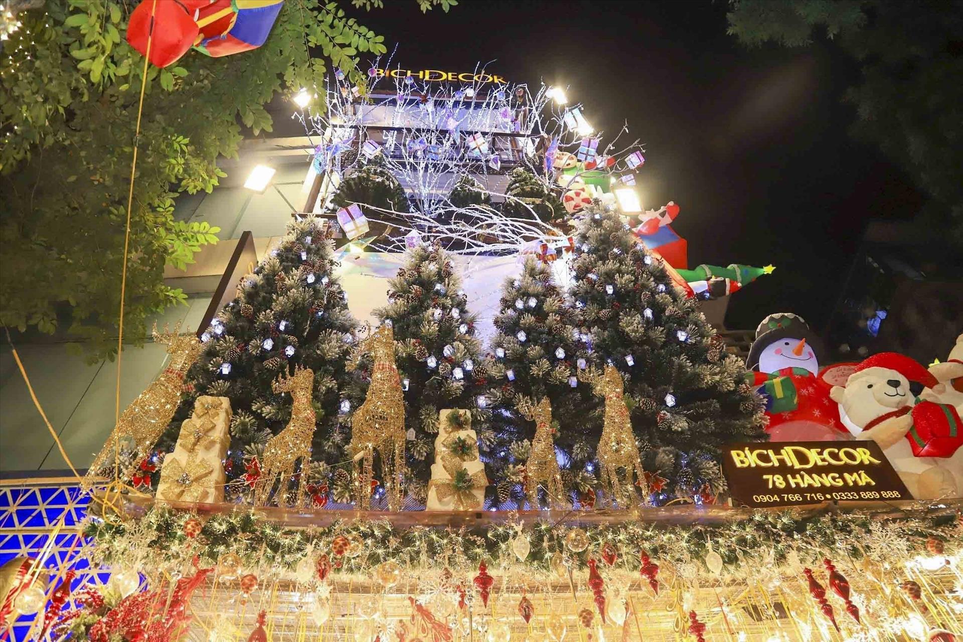 Các cửa hàng bán đồ Giáng sinh được trang trí rực rỡ, bắt mắt trên phố Hàng Mã. Ảnh: Tuấn Đức - TTXVN