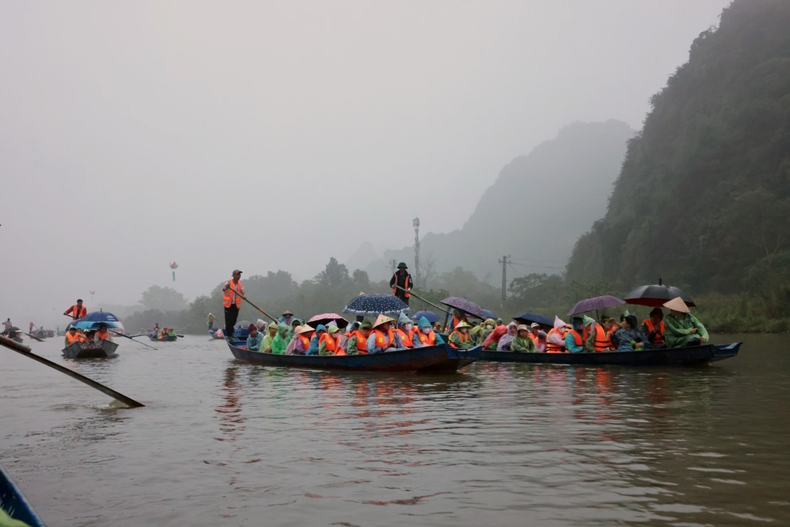 Theo ghi nhận của phóng viên Thông tấn xã Việt Nam, trong ngày khai hội, mặc dù có mưa xuân nhưng hàng nghìn du khách đổ về khu di tích ngay từ sáng sớm. Ban Tổ chức thực hiện miễn phí vé thắng cảnh từ ngày mùng 4 đến hết ngày mùng 6 Tết (du khách chỉ mua vé xuồng đò để tham quan, hành hương) nên lượng khách tăng cao.