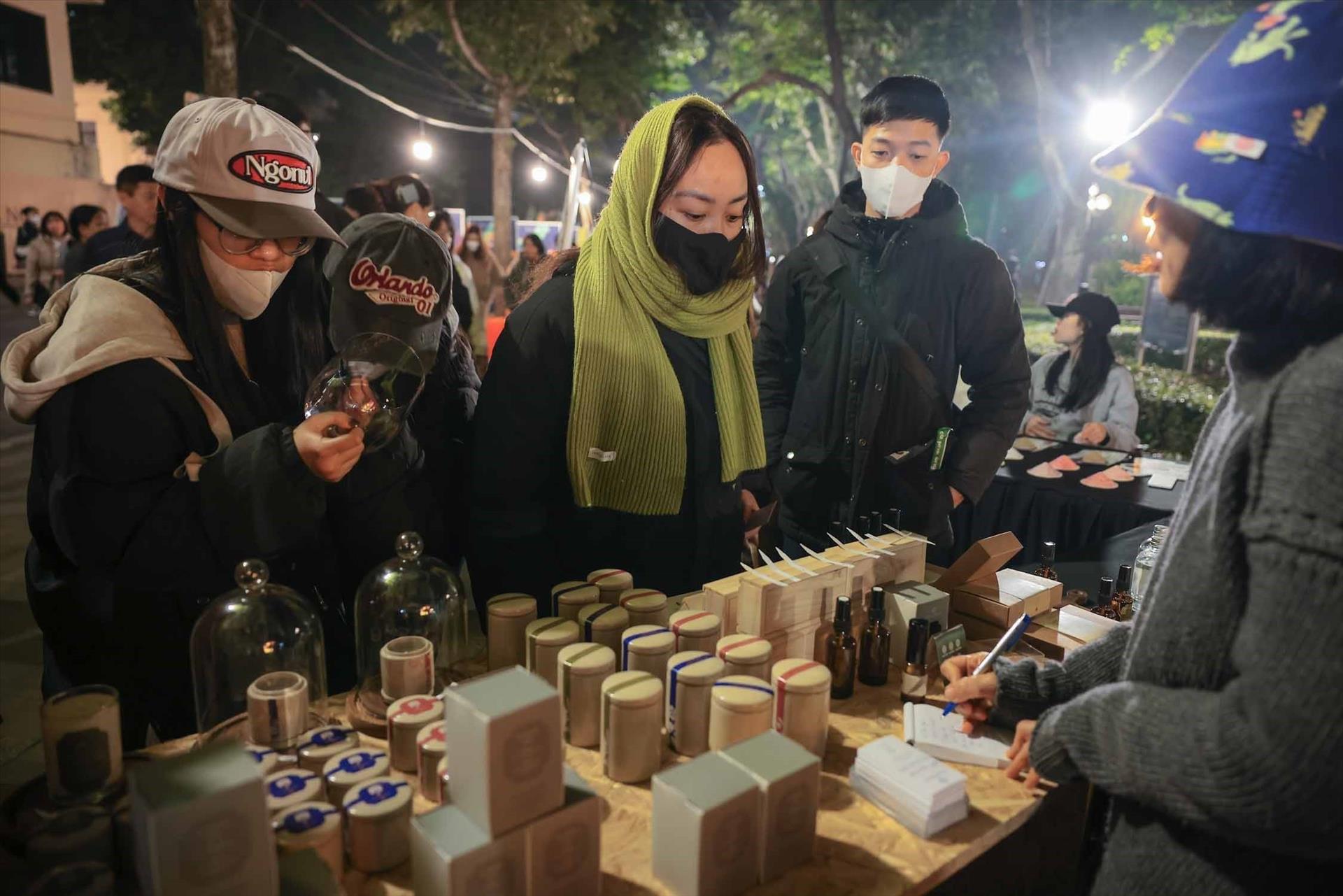 Nhiều người dân tham gia tìm hiểu, mua sắm, trải nghiệm tại khu vực các gian hàng trong chương trình “Tụ hội sáng tạo”. Ảnh: Hoàng Hiếu - TTXVN